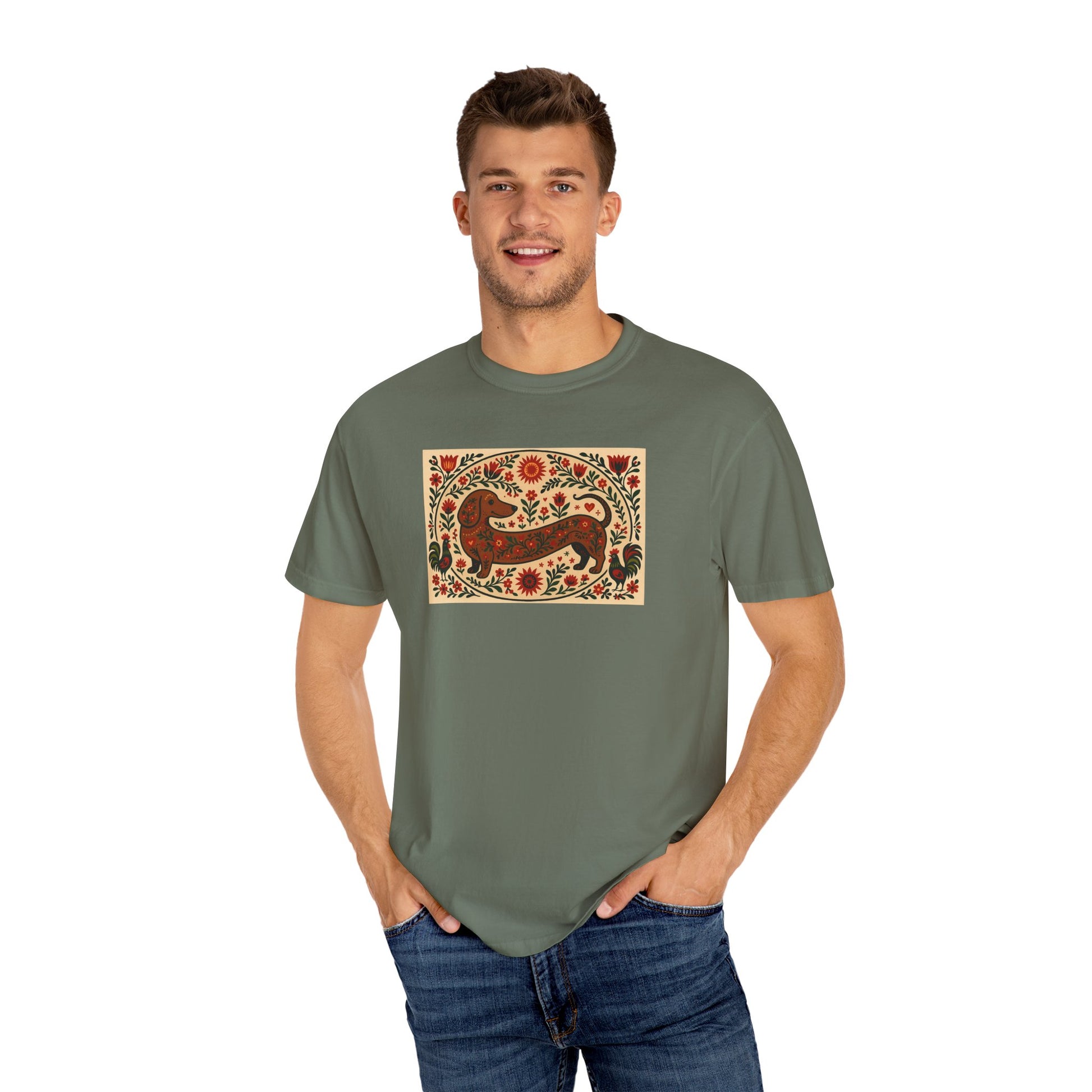 Artistic Garment-Dyed Unisex T-Shirt - Handcrafted Floral Design