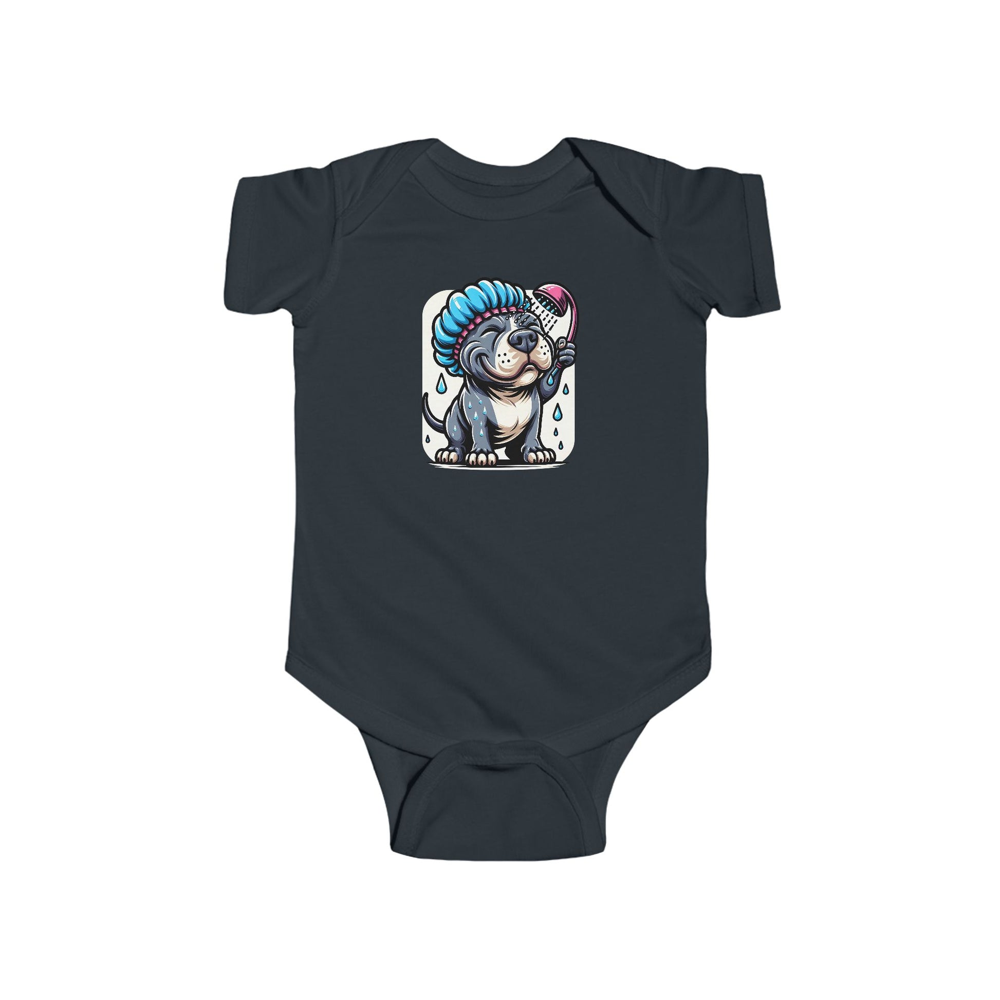 Whether your baby loves bath time or just loves dogs, this onesie is squeaky clean fun β no towel required!