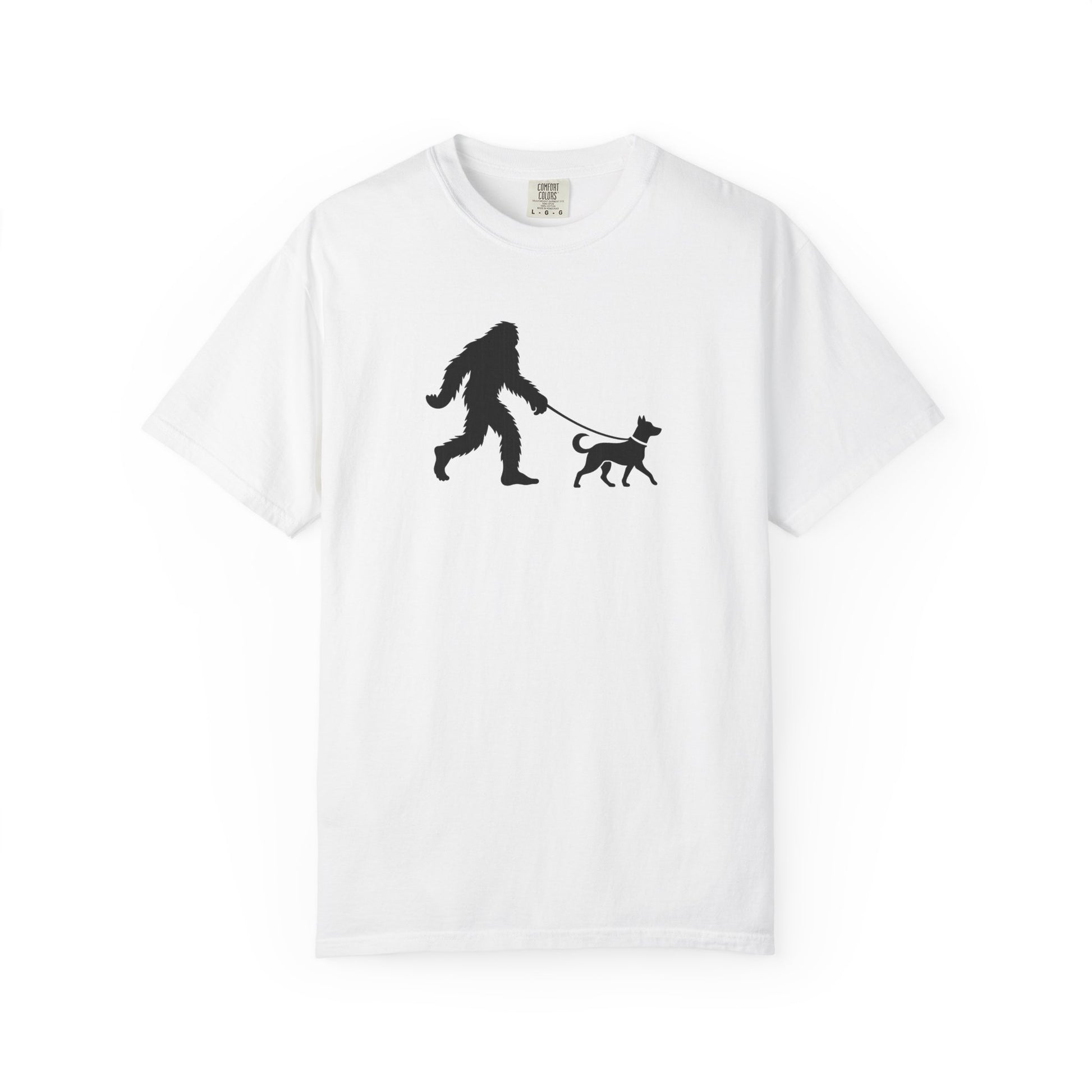 Bigfoot Walking Dog Unisex T-Shirt - Fun Graphic Tee
