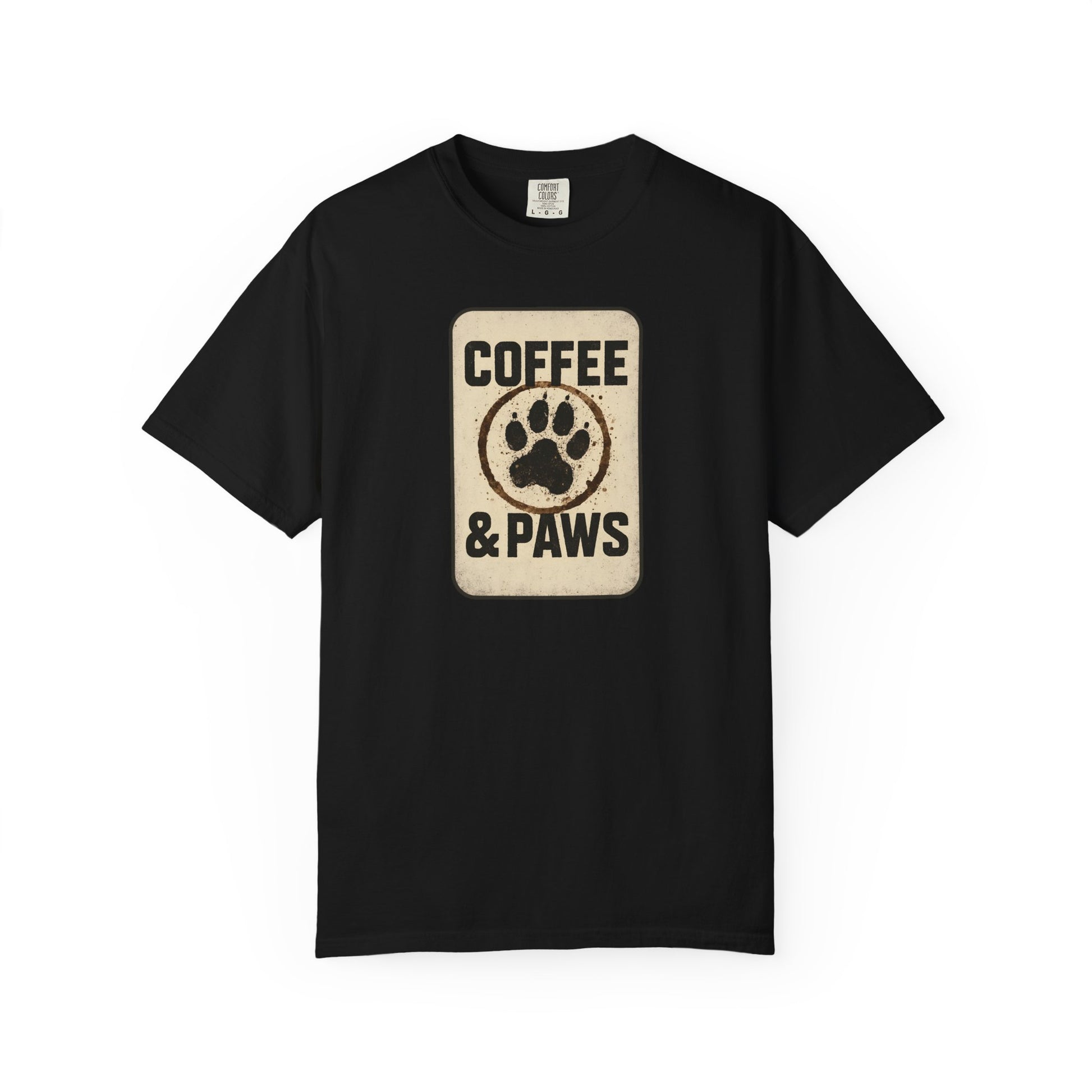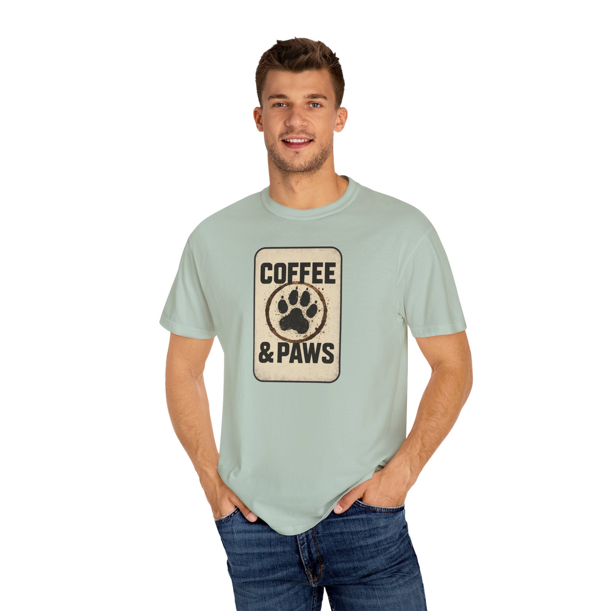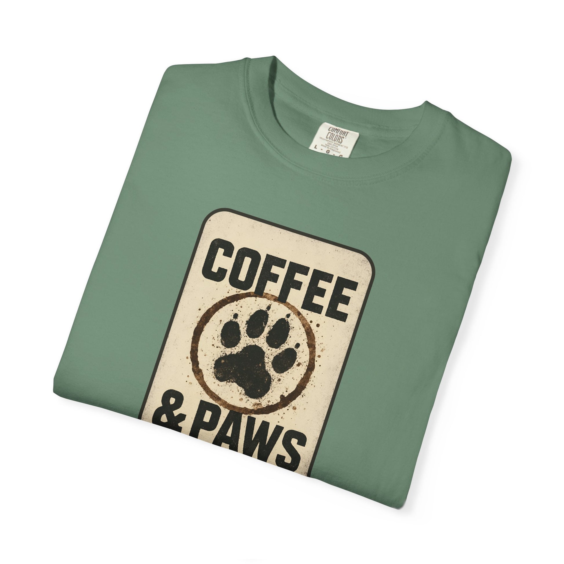 Coffee & Paws Unisex Garment-Dyed T-shirt, Dog Lover Tee, Pet Owner Gift, Coffee Lover Shirt, Animal Enthusiast Apparel, Casual Wear