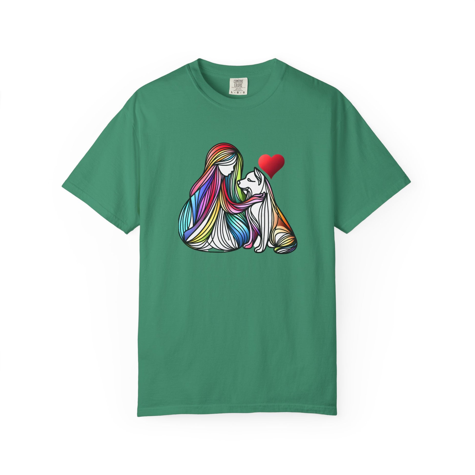 Colorful Dog Love Unisex T-Shirt - Garment-Dyed Cat & Woman Design
