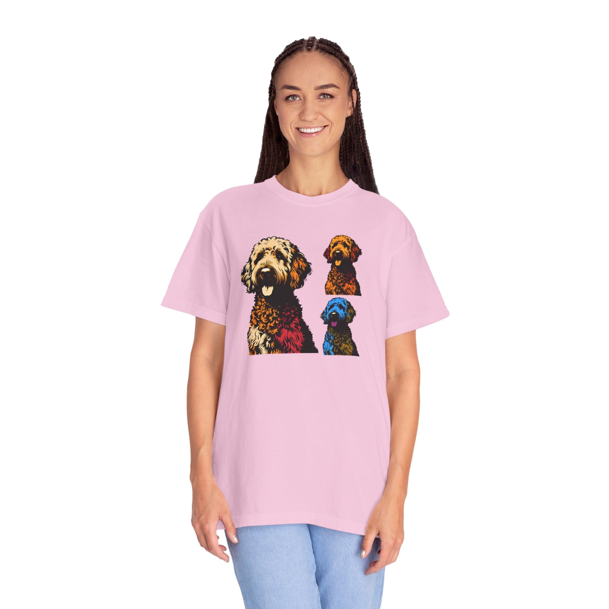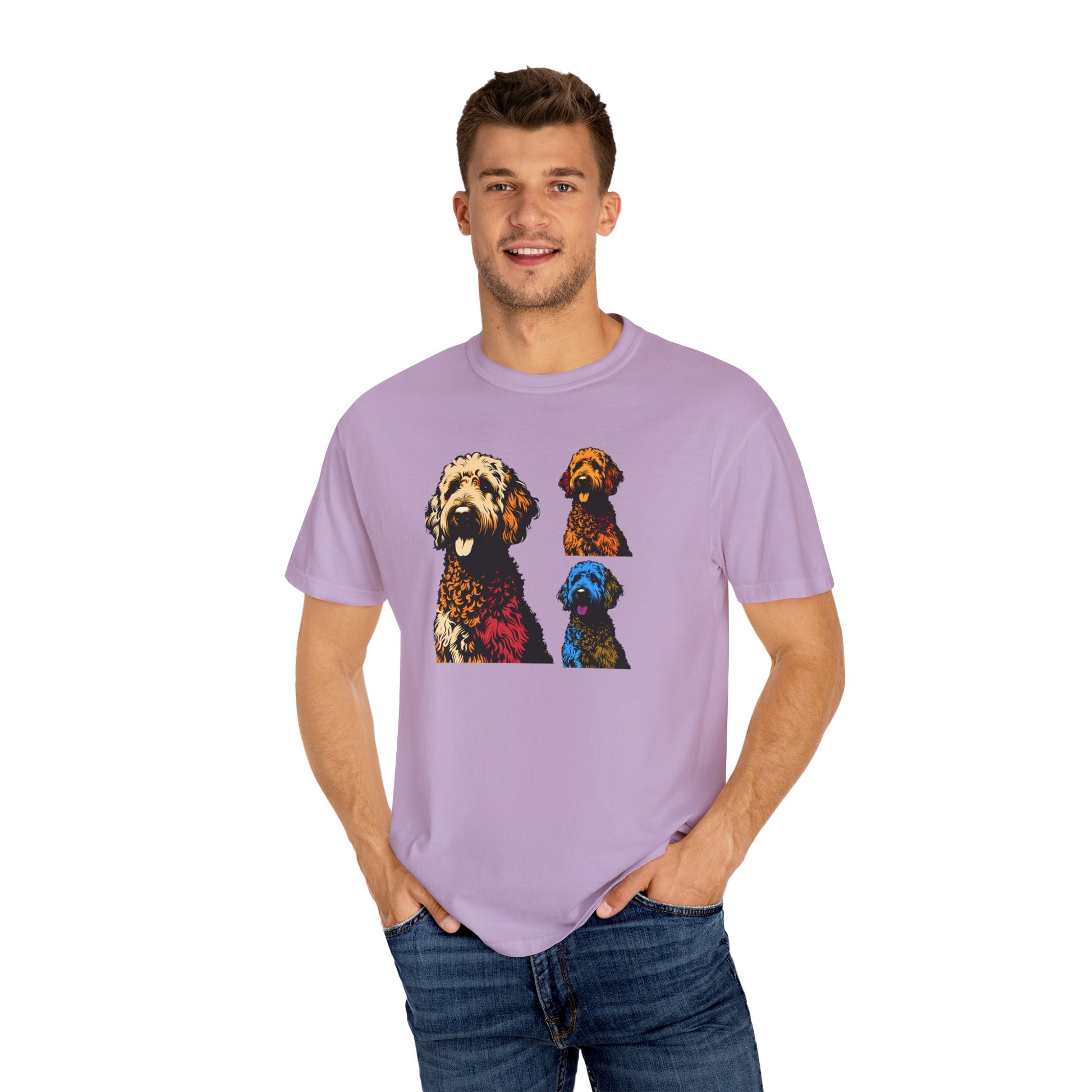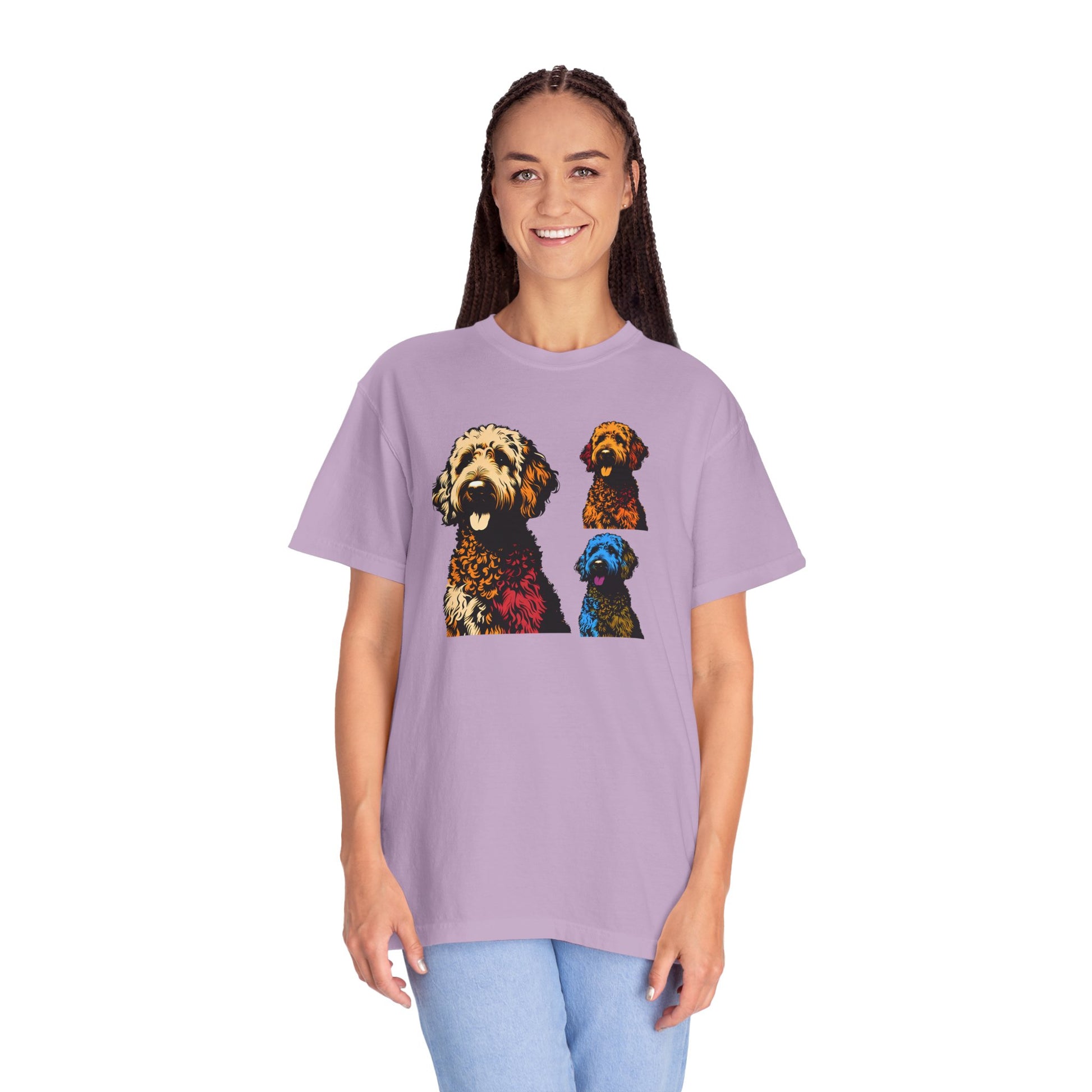 This vibrant tee is a tribute to everyone’s favorite curly-coated companion — the lovable Labradoodle. Featuring a splashy, artistic portrait in bold colors, this shirt is made for those who like their dog style as joyful and energetic as their pup.