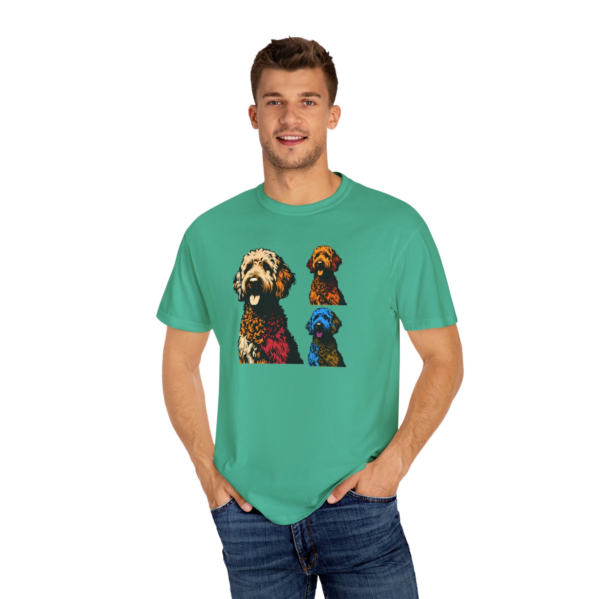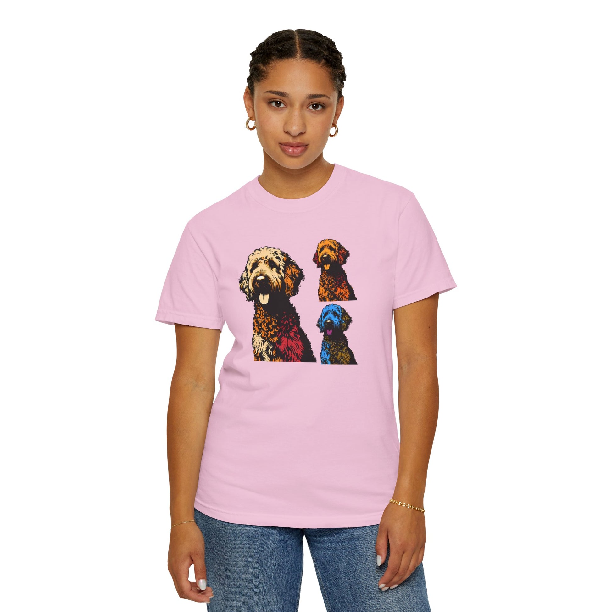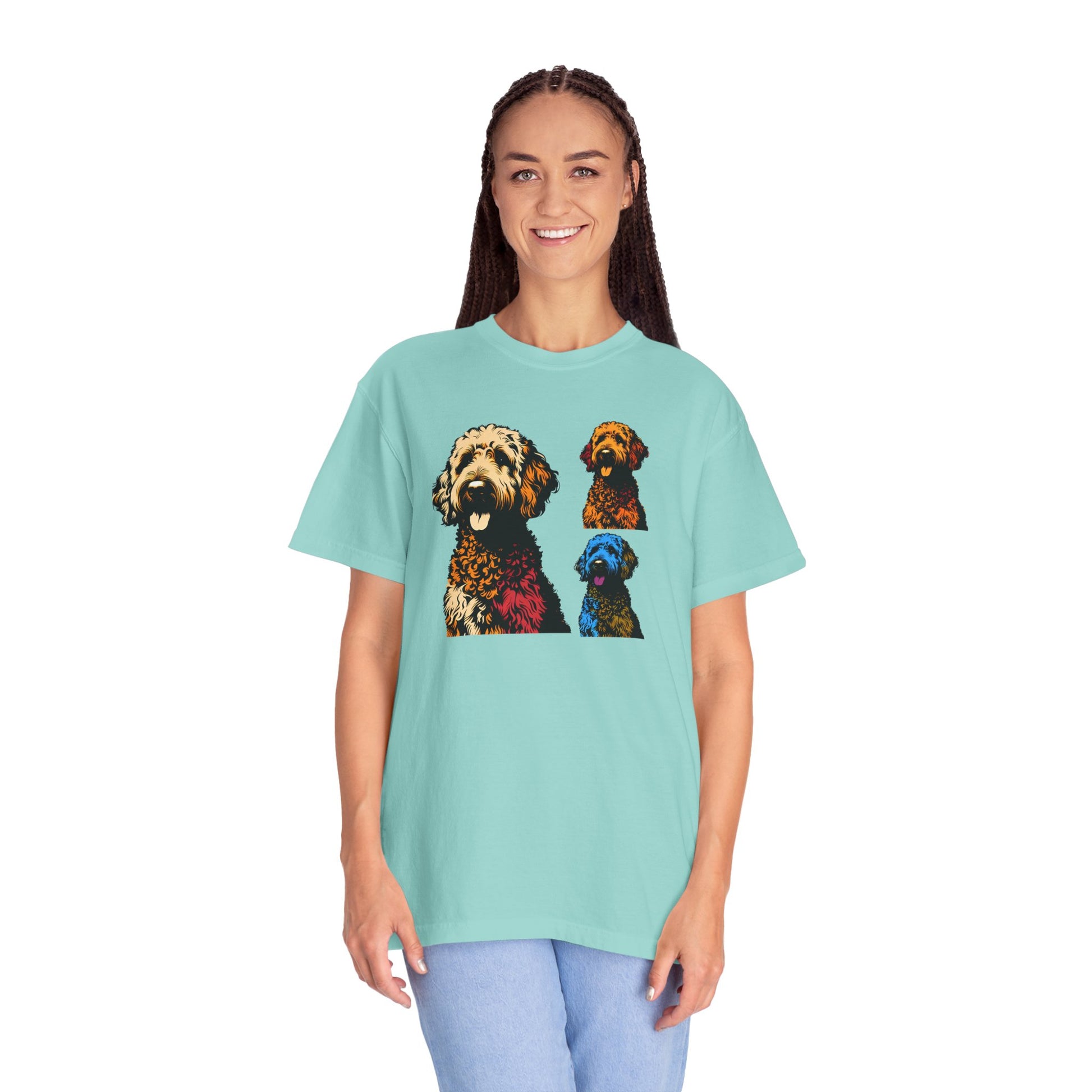 This vibrant tee is a tribute to everyone’s favorite curly-coated companion — the lovable Labradoodle. Featuring a splashy, artistic portrait in bold colors, this shirt is made for those who like their dog style as joyful and energetic as their pup.