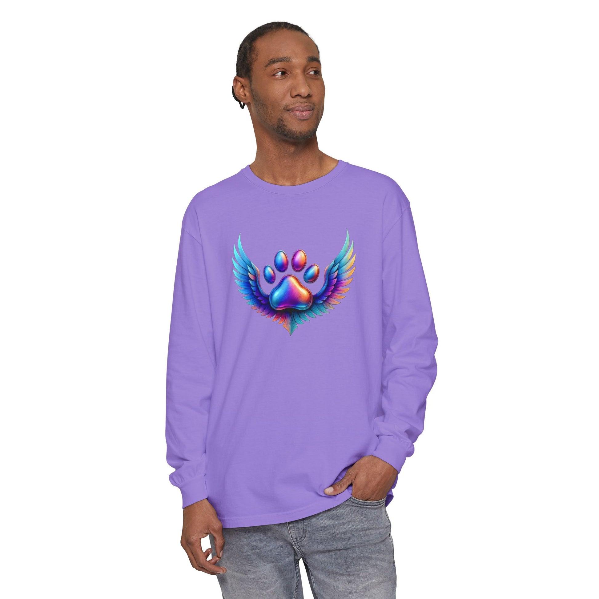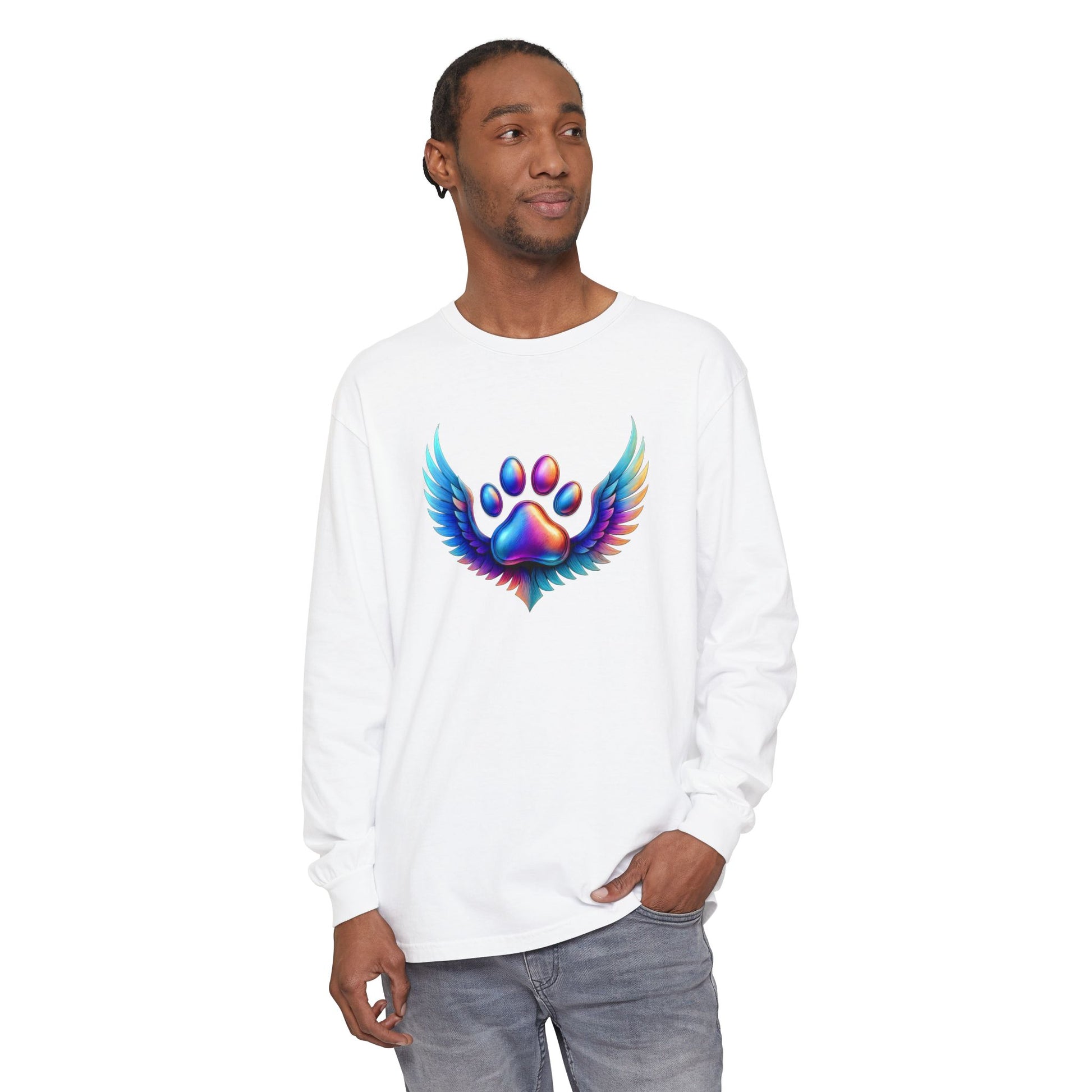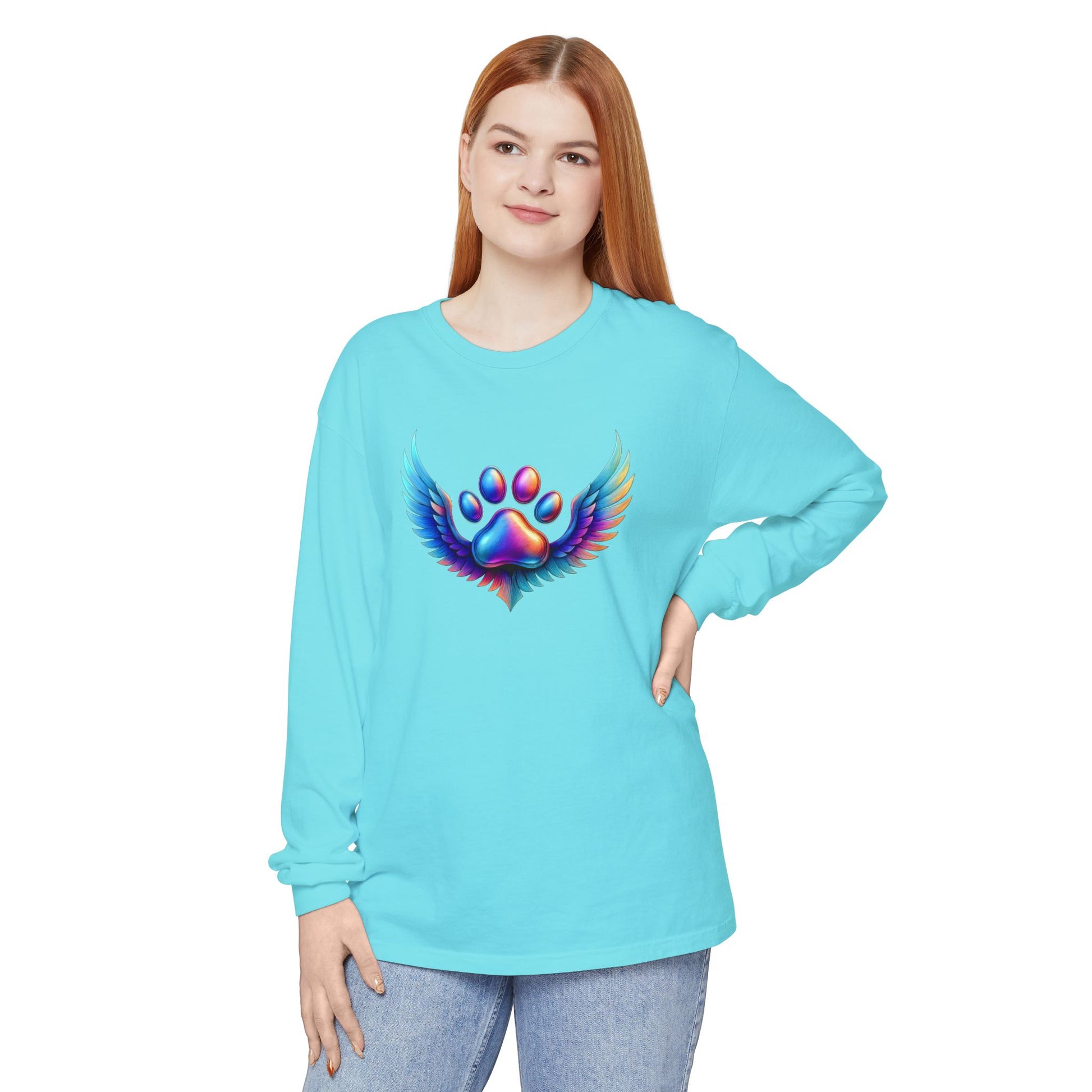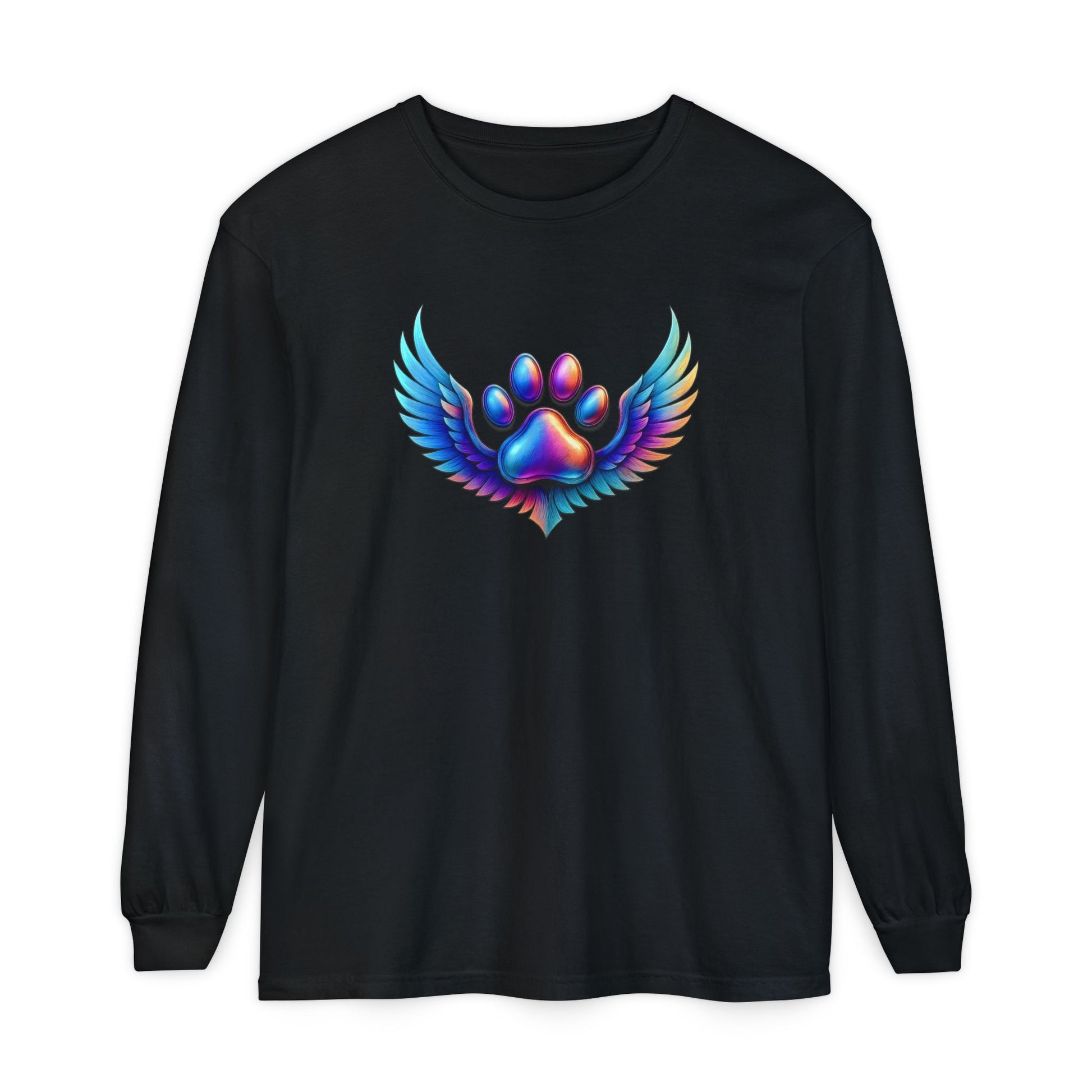 Colorful Paw Print Long Sleeve T-Shirt, Animal Lover Gift, Pet Memorial Tee, Winged Paw Shirt, Unisex Graphic Tee