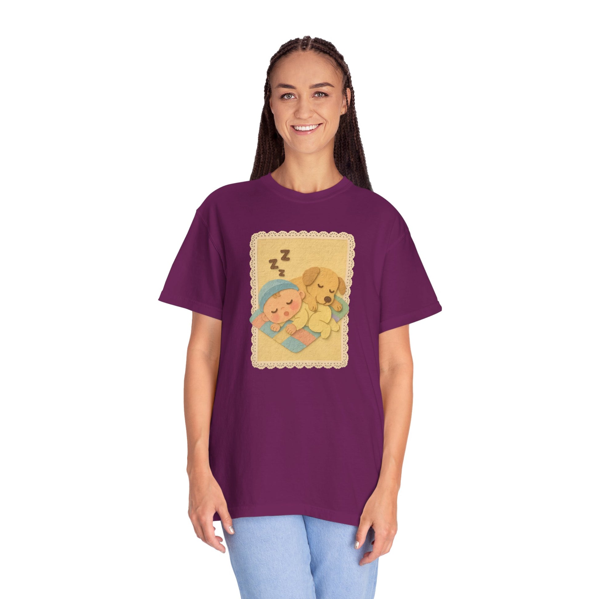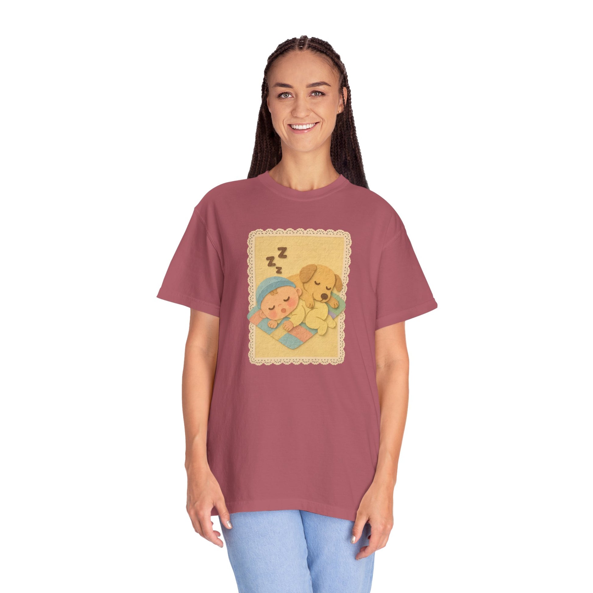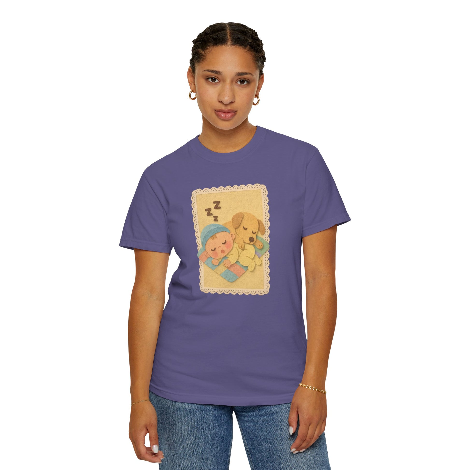 Cute Dreamy T-Shirt, Cartoon Sleepy Baby and Puppy Design, Cozy Gift for Kids, Fun Sleepwear, Nursery Decor, Pet Lover Gift