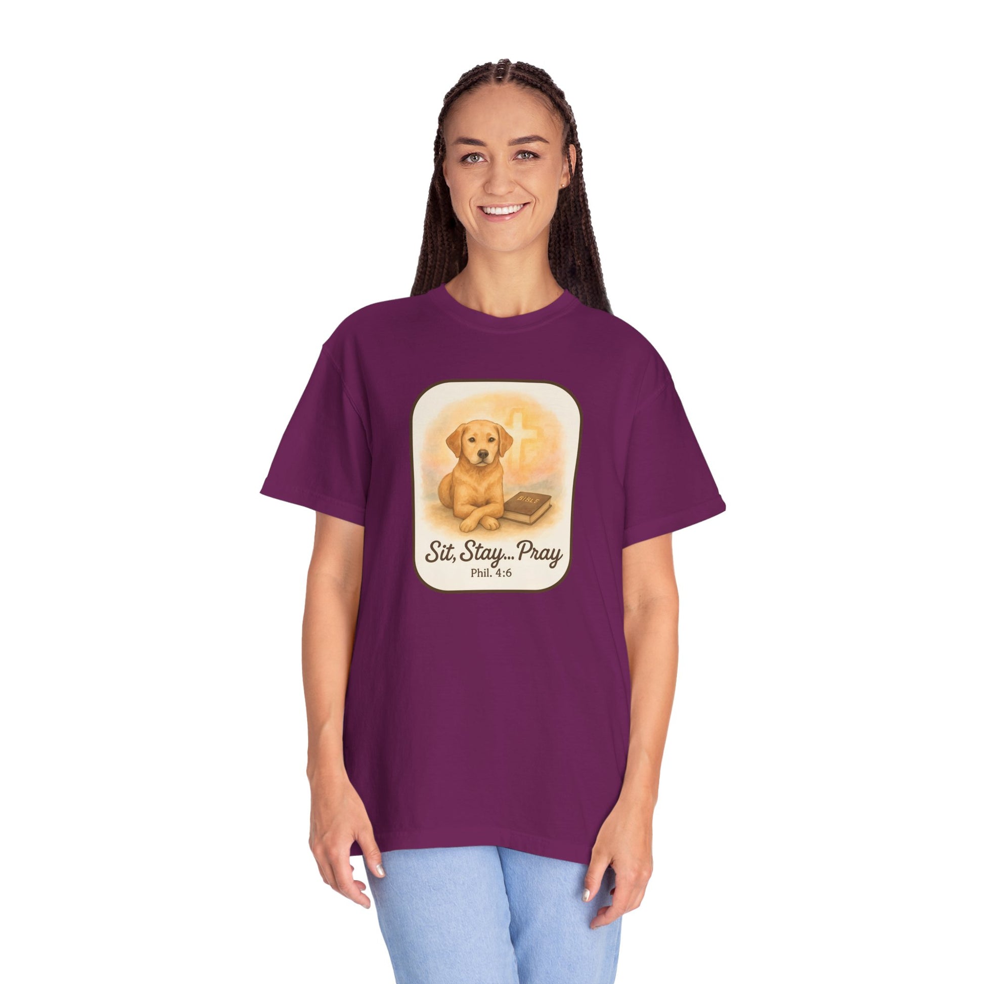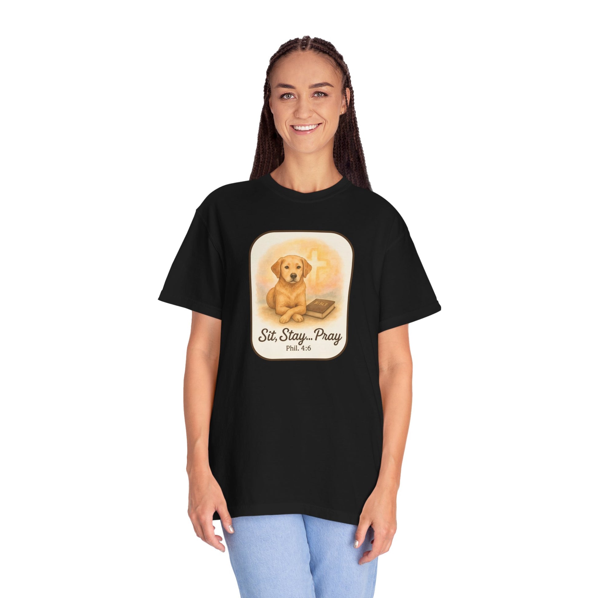 Faith-Inspired Dog Lovers T-Shirt, Unisex Tee, Gift for Pet Owners, Friendship Apparel, Casual Church Wear, Stay Pray Dog Design