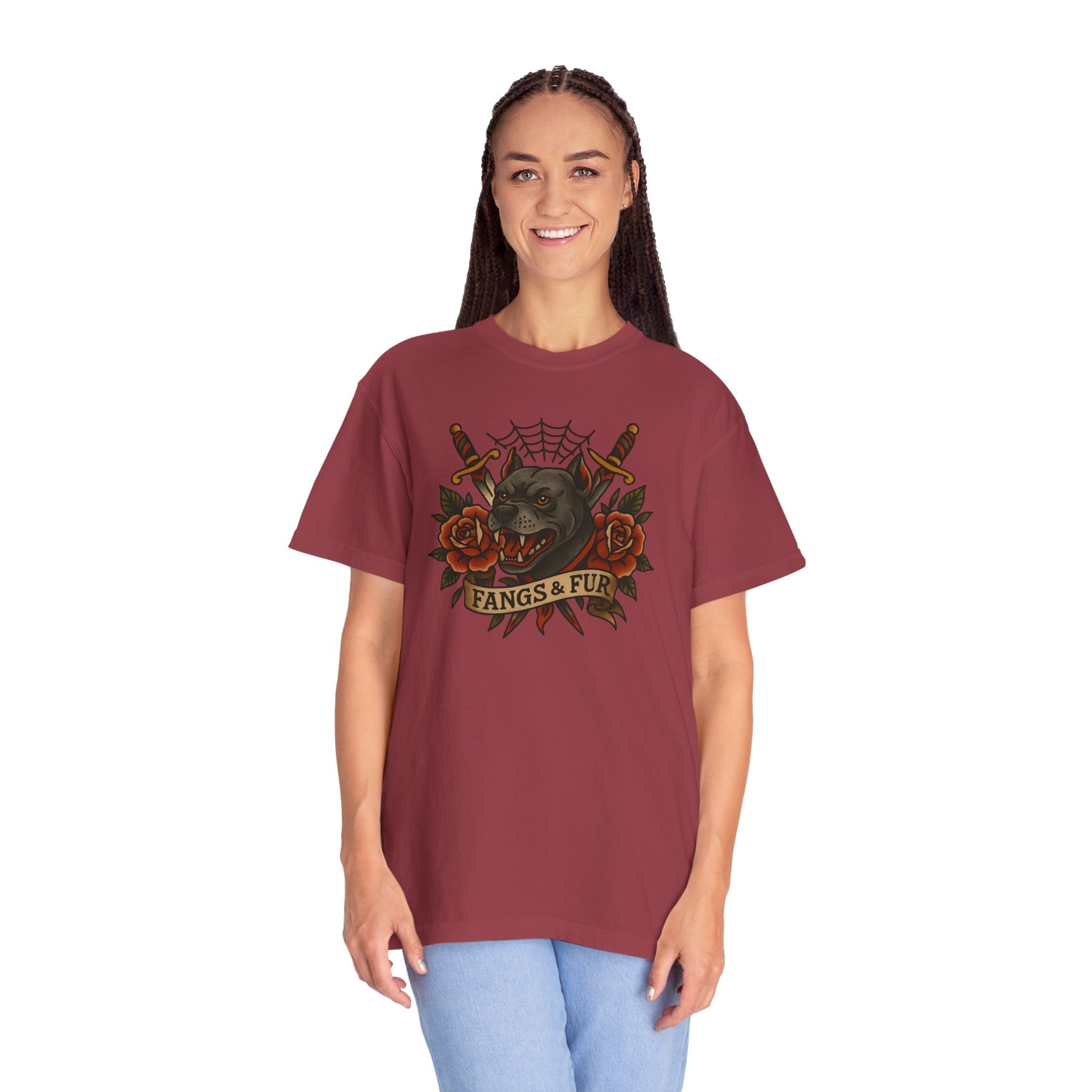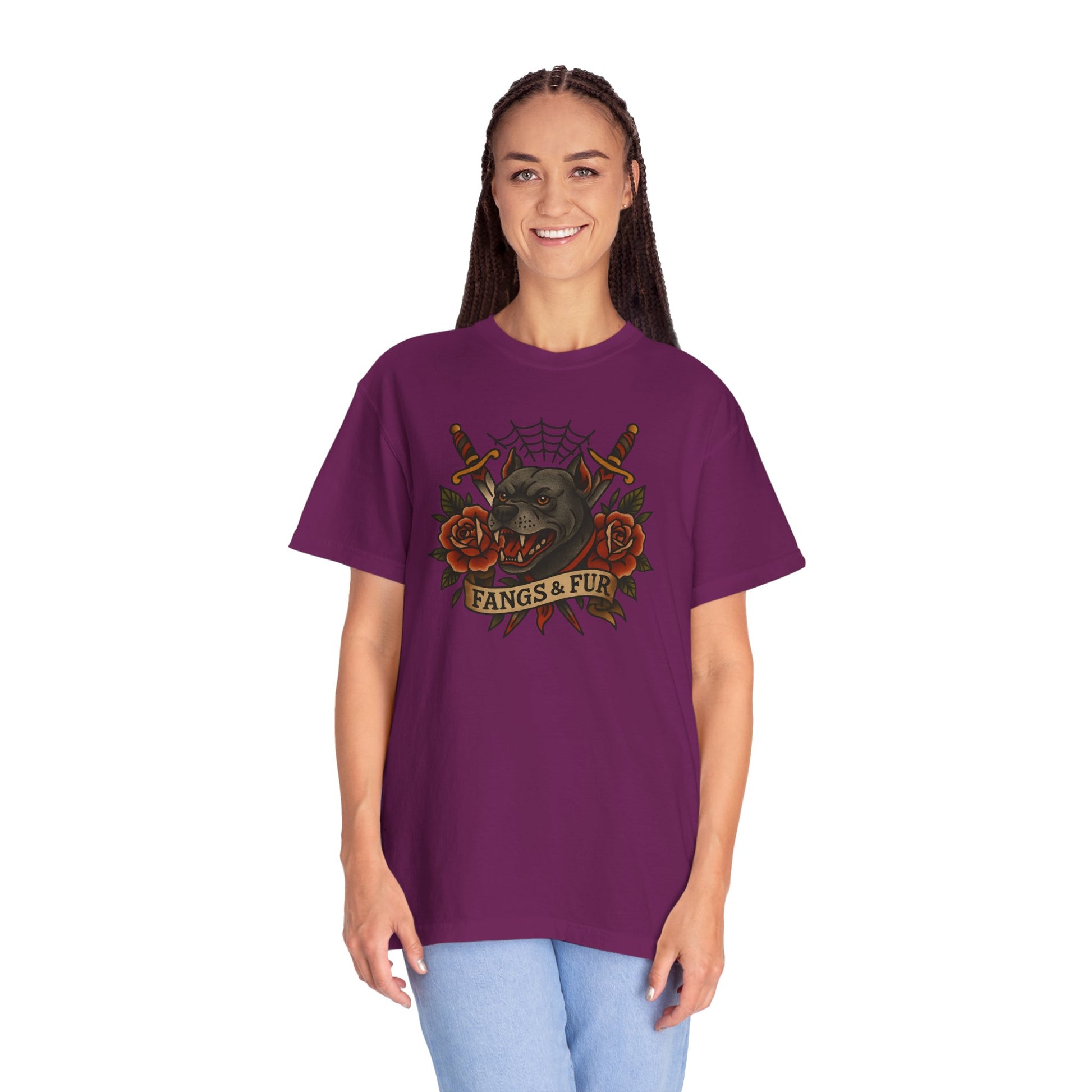 Fangs & Fur Unisex T-Shirt, Gothic Tee, Halloween Apparel, Alternative Fashion, Cat & Rose Design, Graphic T-Shirt