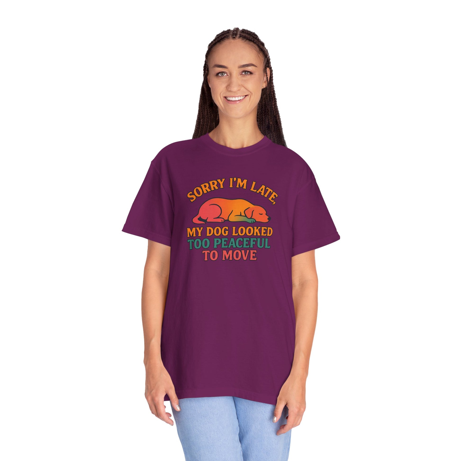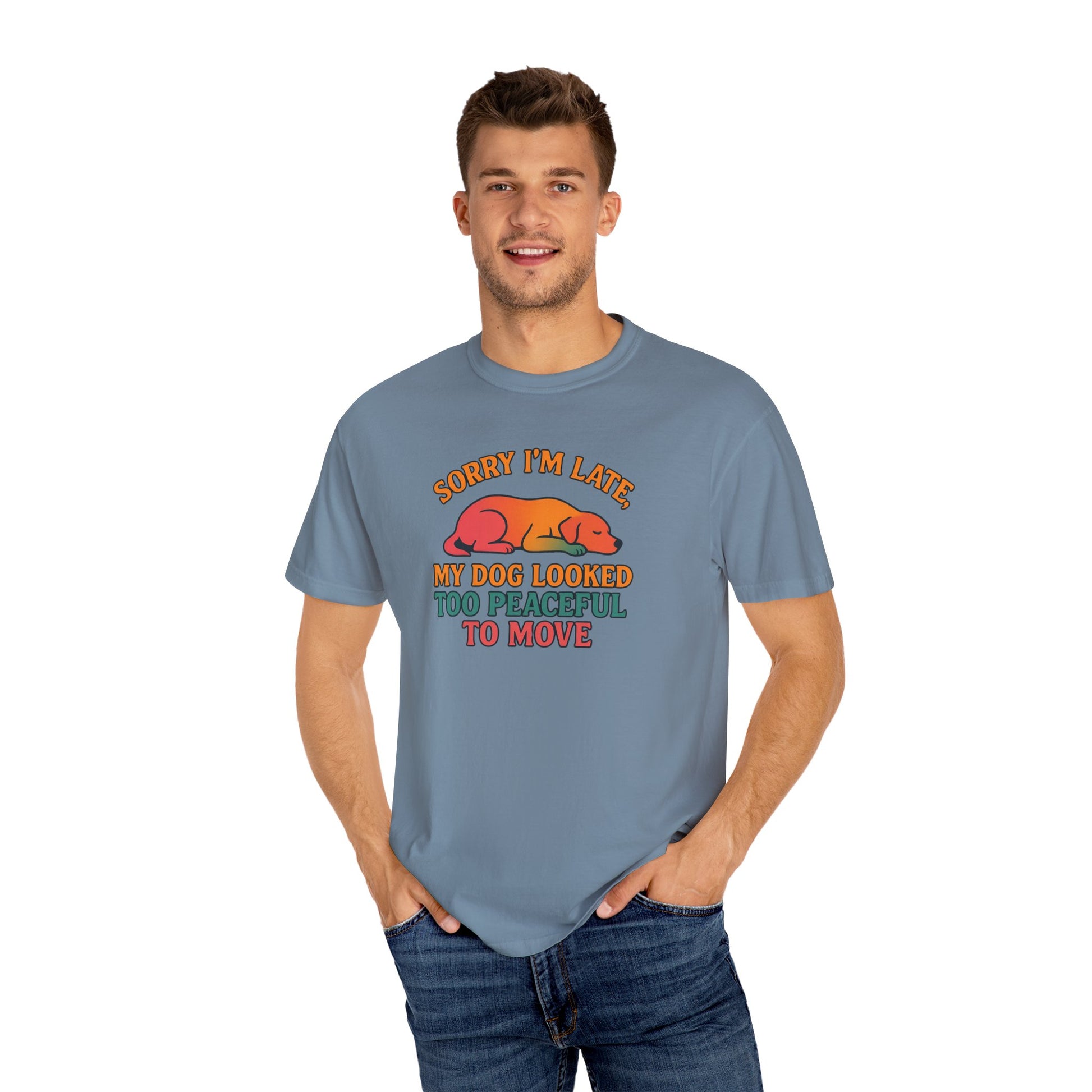 Funny Dog Lovers T-Shirt - 'Sorry I'm Late, My Dog Looked Too Peaceful to Move'