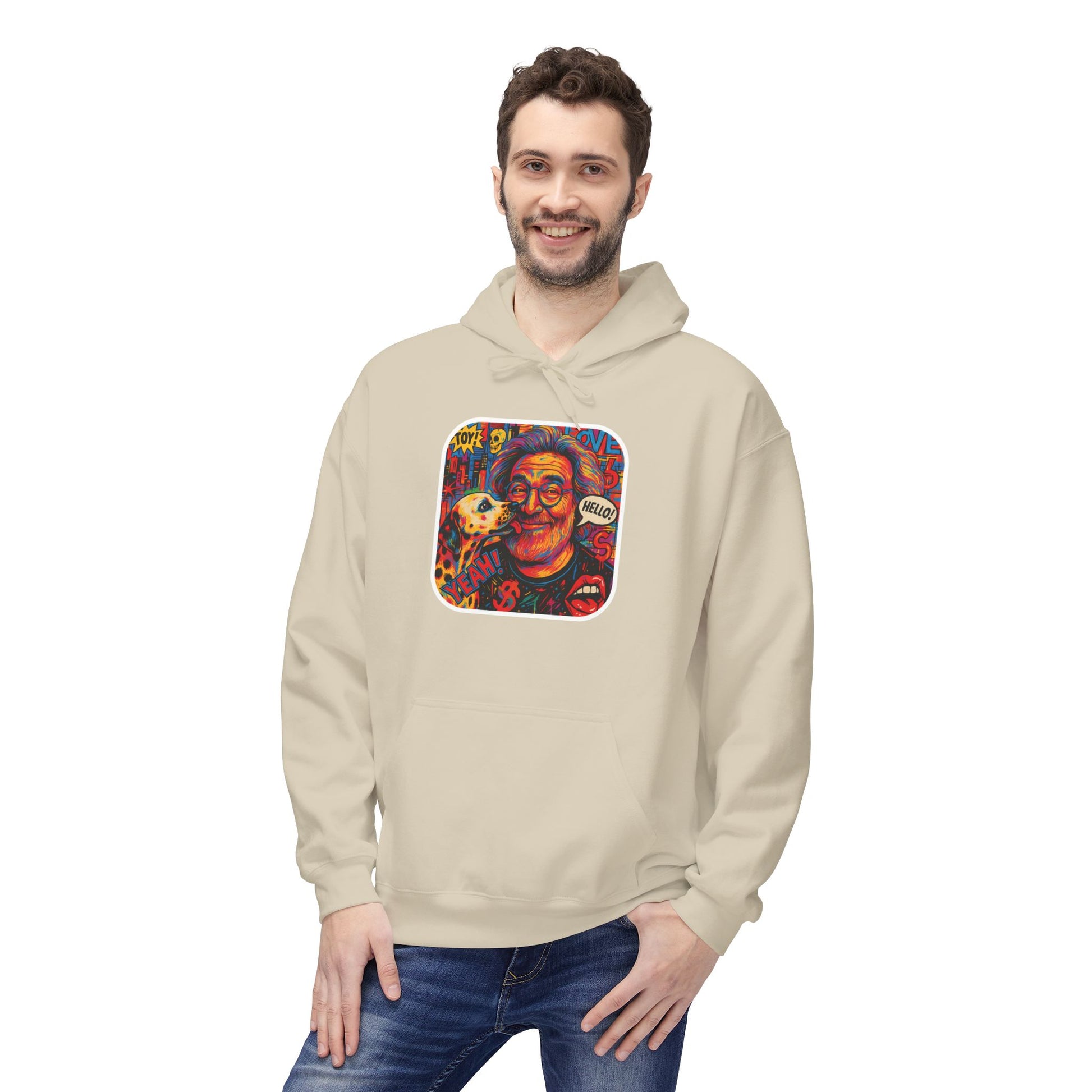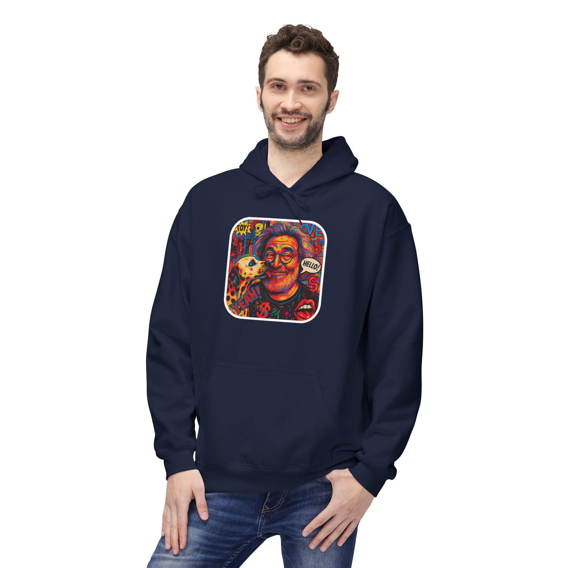 A cozy and stylish hoodie featuring a vibrant Pop Art design of Jerry Garcia and a dog. Perfect for fans of Jerry Garcia or anyone who appreciates unique art. Great for casual wear or as a statement piece. Ideal for gifting during birthdays, holidays, or special occasions.
