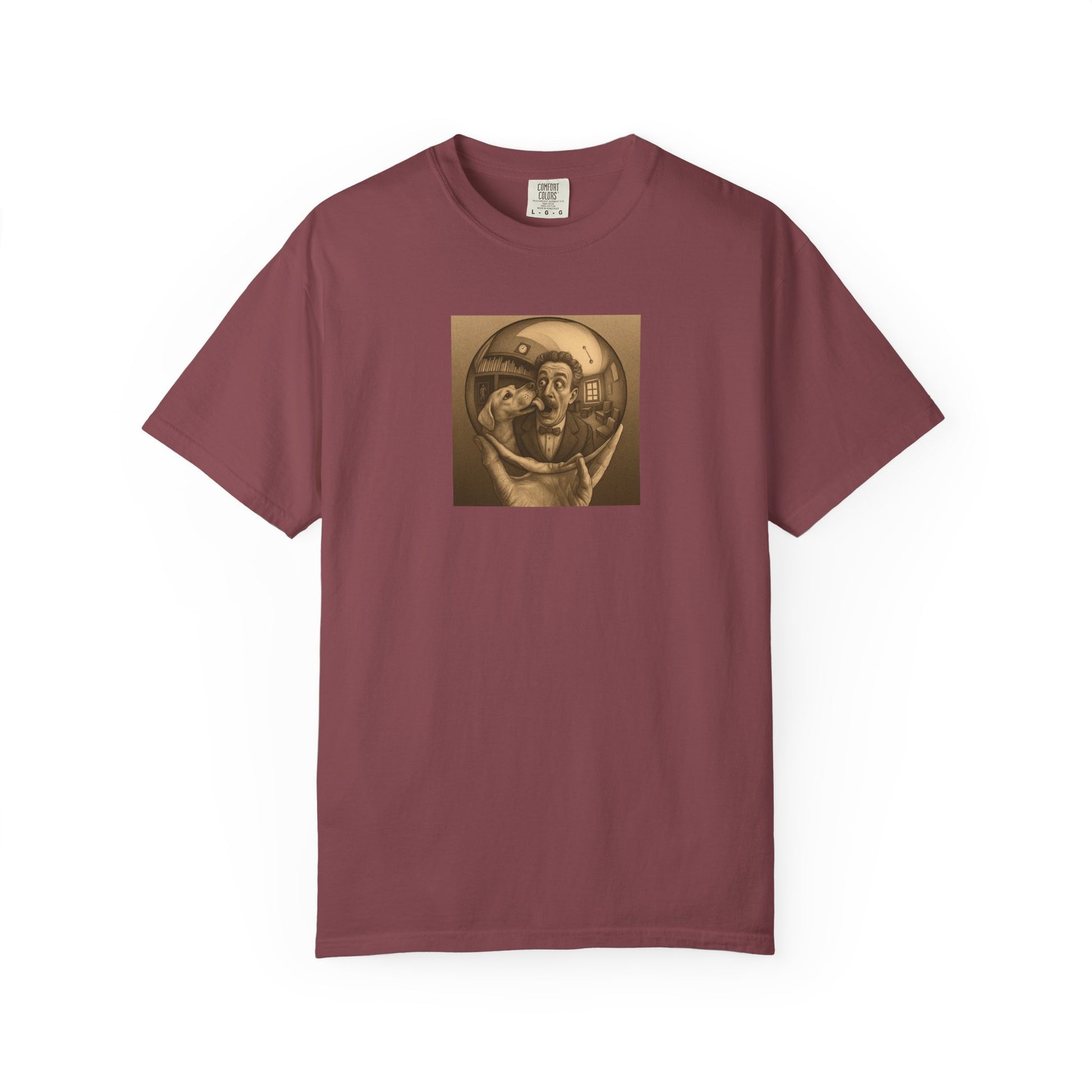 MC Escher and His Dog Unisex Garment-Dyed T-shirt - Retro Design for Creative Souls