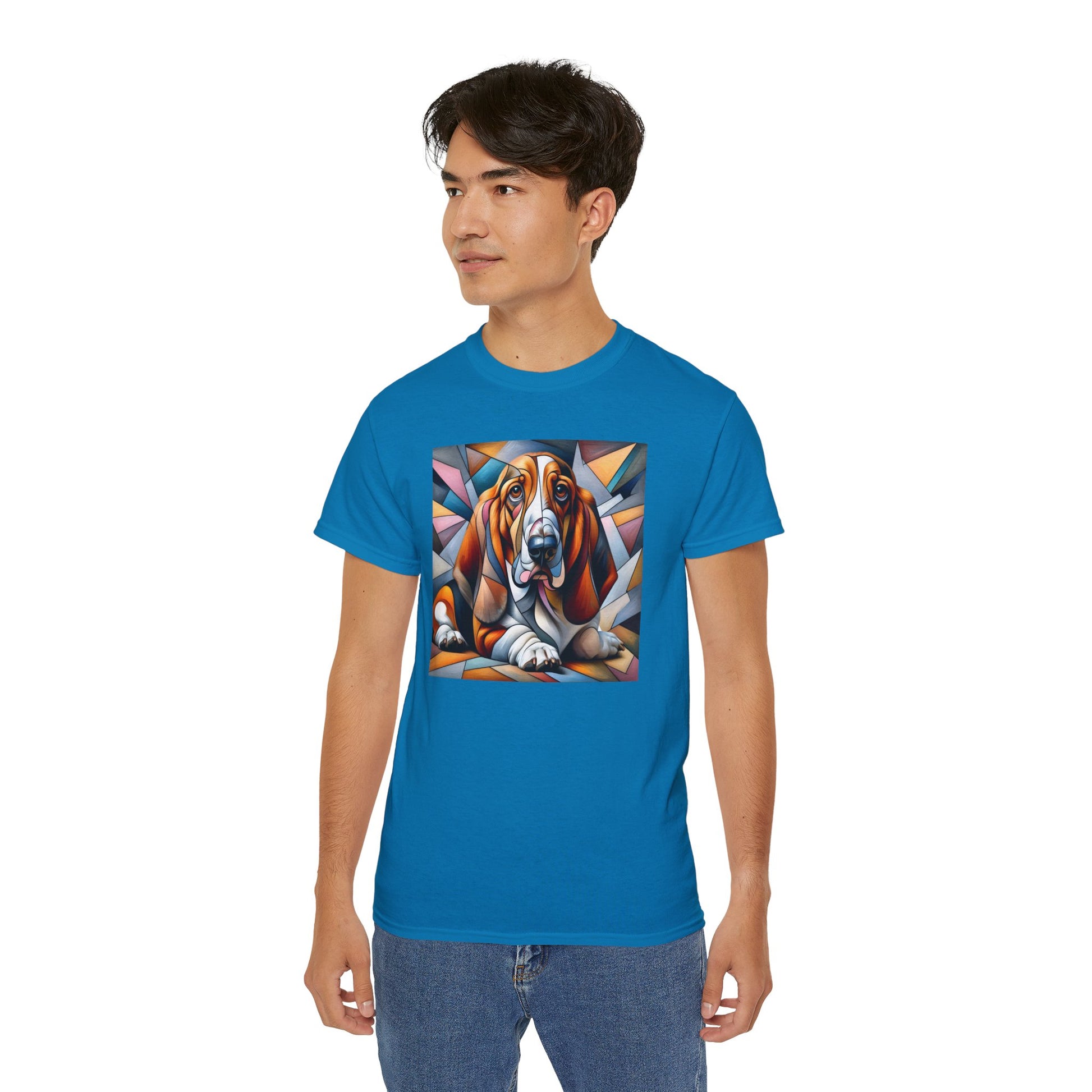 Bring soulful charm and artistic flair to your wardrobe with the “Melancholy Muse – Petcasso Basset Hound Tee.” This unique design transforms the iconic droopy-eyed Basset Hound into a vibrant cubist portrait—brimming with personality, texture, and heart. Inspired by the bold geometry and emotional depth of Picasso’s signature style (or as we lovingly call it, Petcasso), this tee captures the essence of artistic expression and canine devotion.