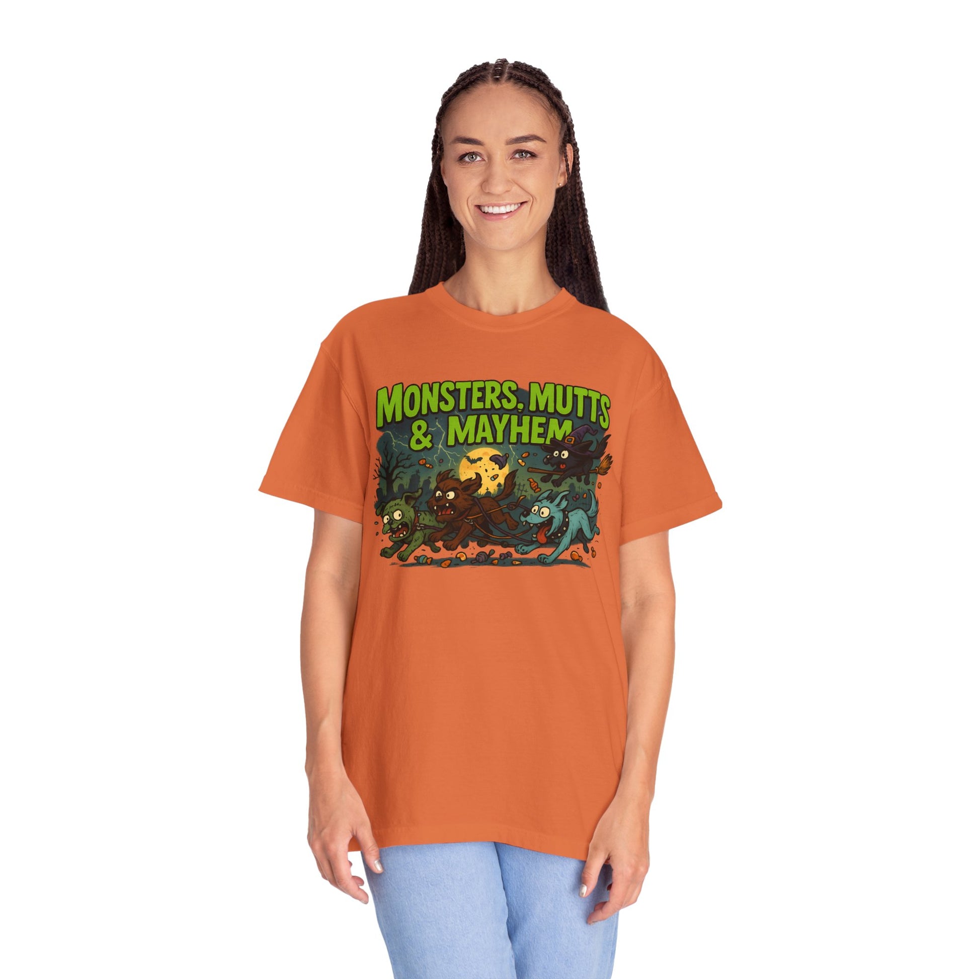 Monsters, Mutts & Mayhem Garment-Dyed T-Shirt, Vintage Style Tee, Animal Lovers Gift, Fun Graphic Shirt, Halloween Costume, Casual Wear