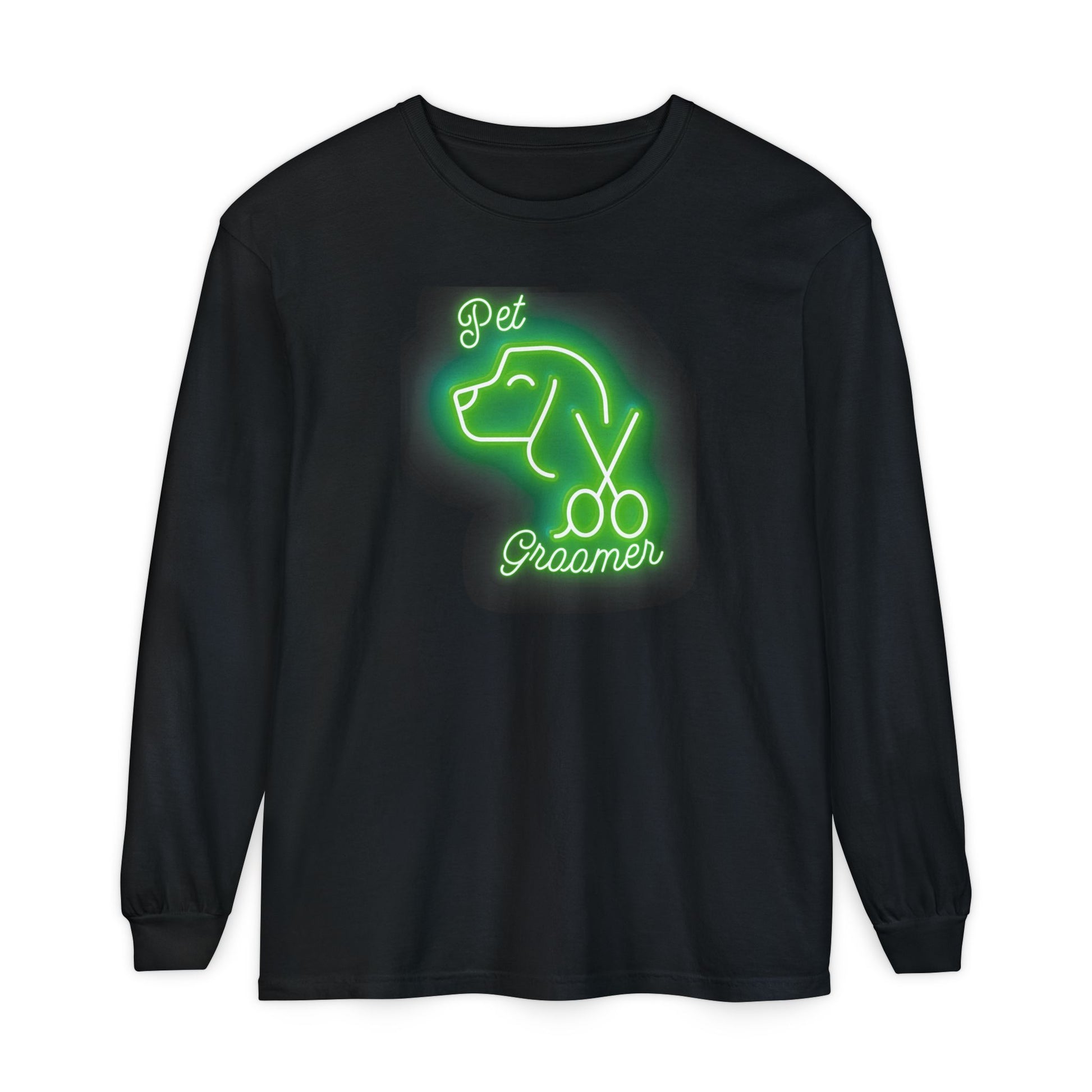 Neon Green Pet Groomer Long Sleeve T-Shirt - Perfect Gift for Dog Lovers