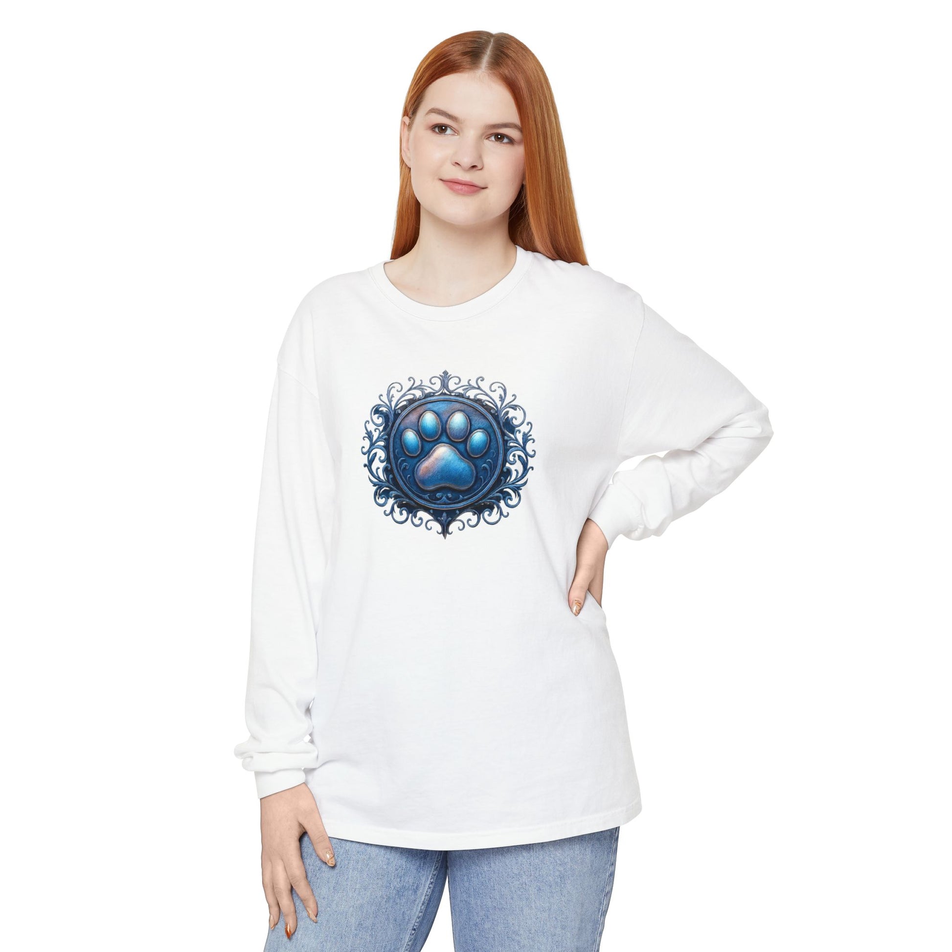 Paw Print Long Sleeve T-Shirt for Pet Lovers | Cozy Gift for Animal Enthusiasts, Casual Wear, Dog Mom Gift, Unique Pet Tee, Everyday Fashion