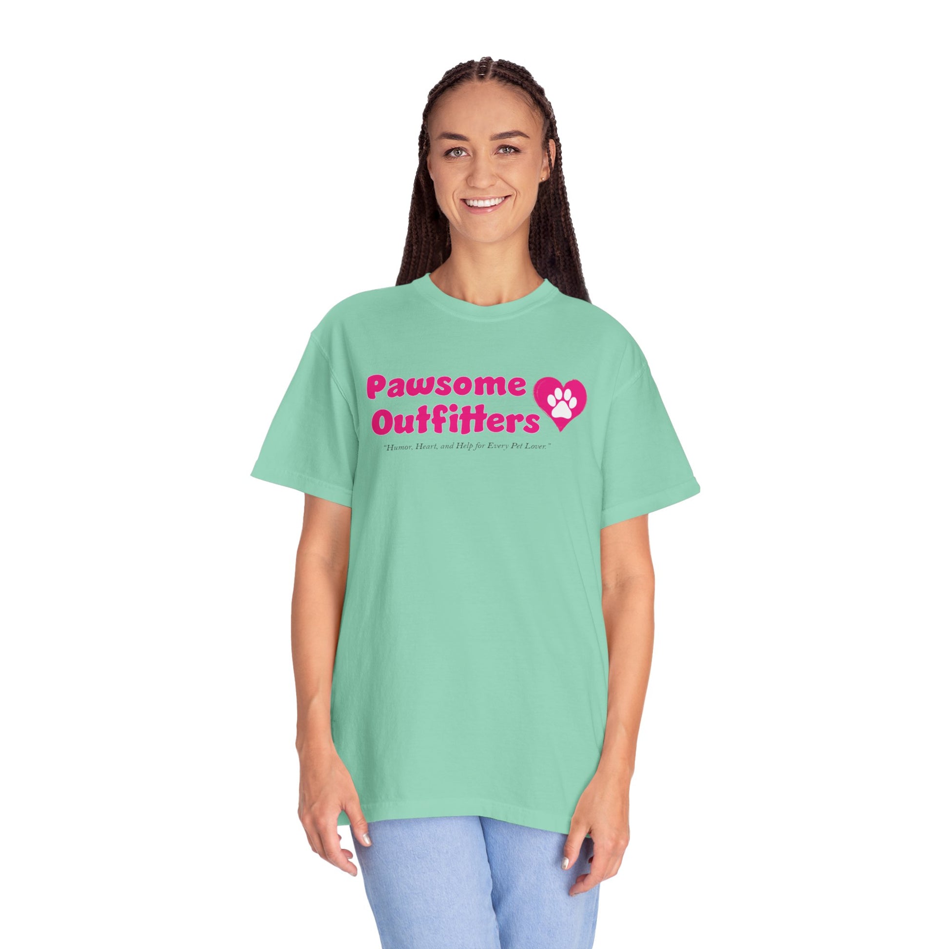 Pawsome Outfitters Official T-Shirt is a comfortable and stylish unisex garment-dyed tee perfect for casual wear. The double-needle stitching and seamless design ensure durability and a clean look. This tee is suitable for adults and is made with high-quality, ethically sourced US cotton for long-lasting comfort. With a relaxed fit and classic crew neckline, it's ideal for both casual and semi-formal occasions. Perfect for those who love pets, this tee is a great gift for animal lovers or can be worn during pet-related holidays and events.
