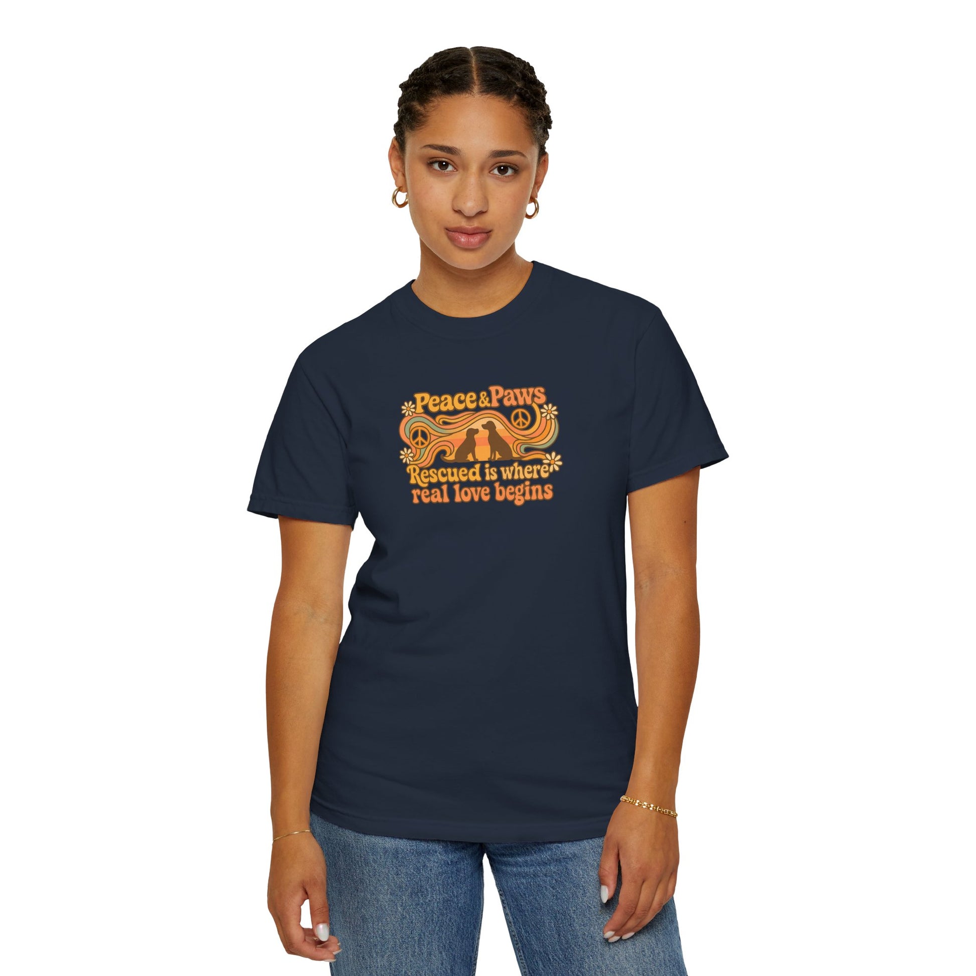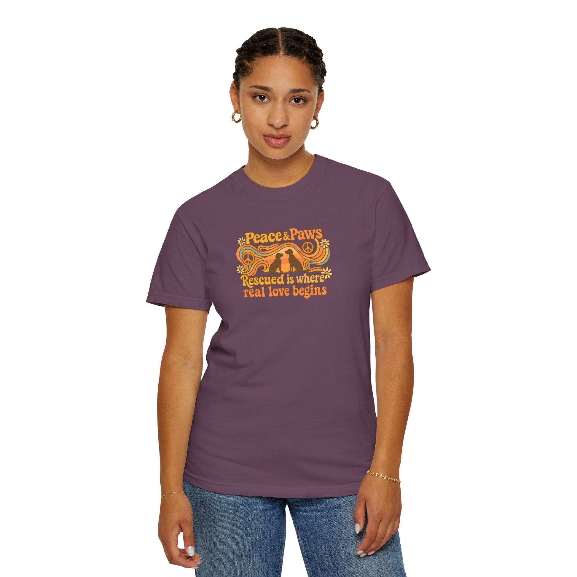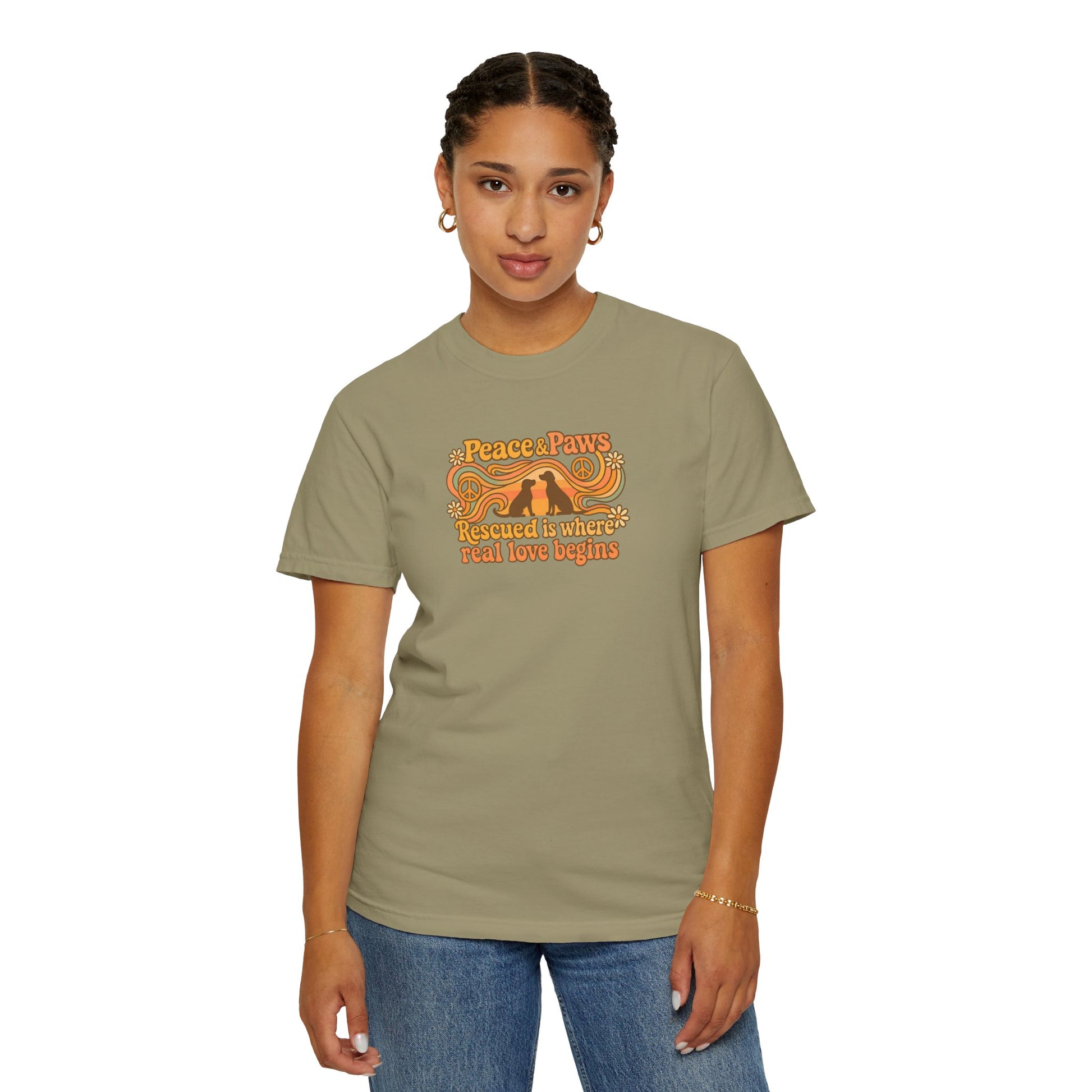 Discover the ultimate comfort and style with our Peace & Paws unisex garment-dyed t-shirt. This versatile tee exudes a relaxed and cozy vibe, making it perfect for casual outings or semi-formal gatherings. Ideal for fashion-forward individuals who appreciate sustainable clothing, it fits seamlessly into any wardrobe. Whether you're popping out for coffee, lounging at home, or celebrating important occasions like birthdays or casual get-togethers, this t-shirt is your go-to choice. Available in a wide range of sizes and colors, it’s a fabulous fit for everyone, from trendsetters to comfort-seekers. Treat yourself or gift it to a loved one; a delightful surprise for holidays such as Earth Day or special celebrations!
