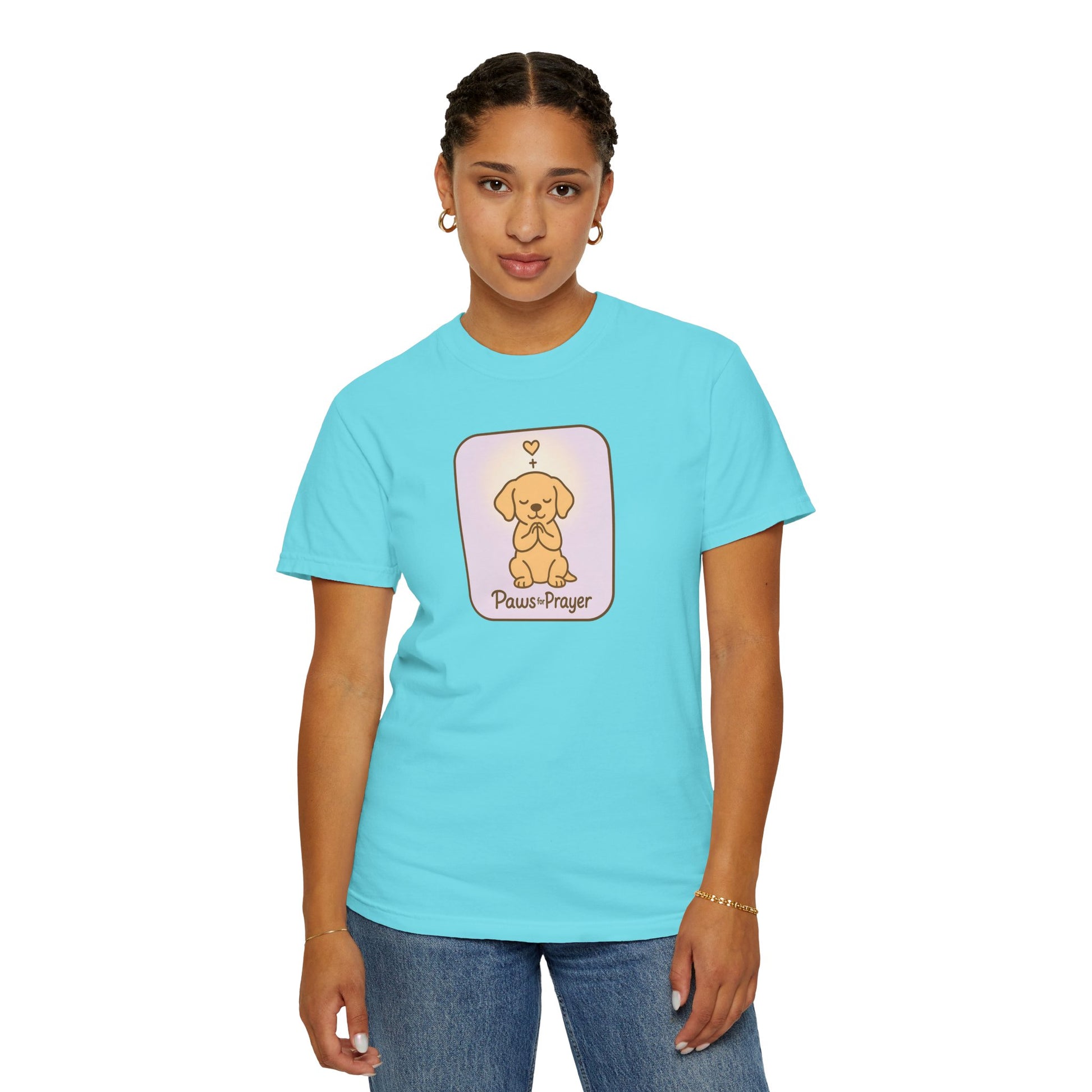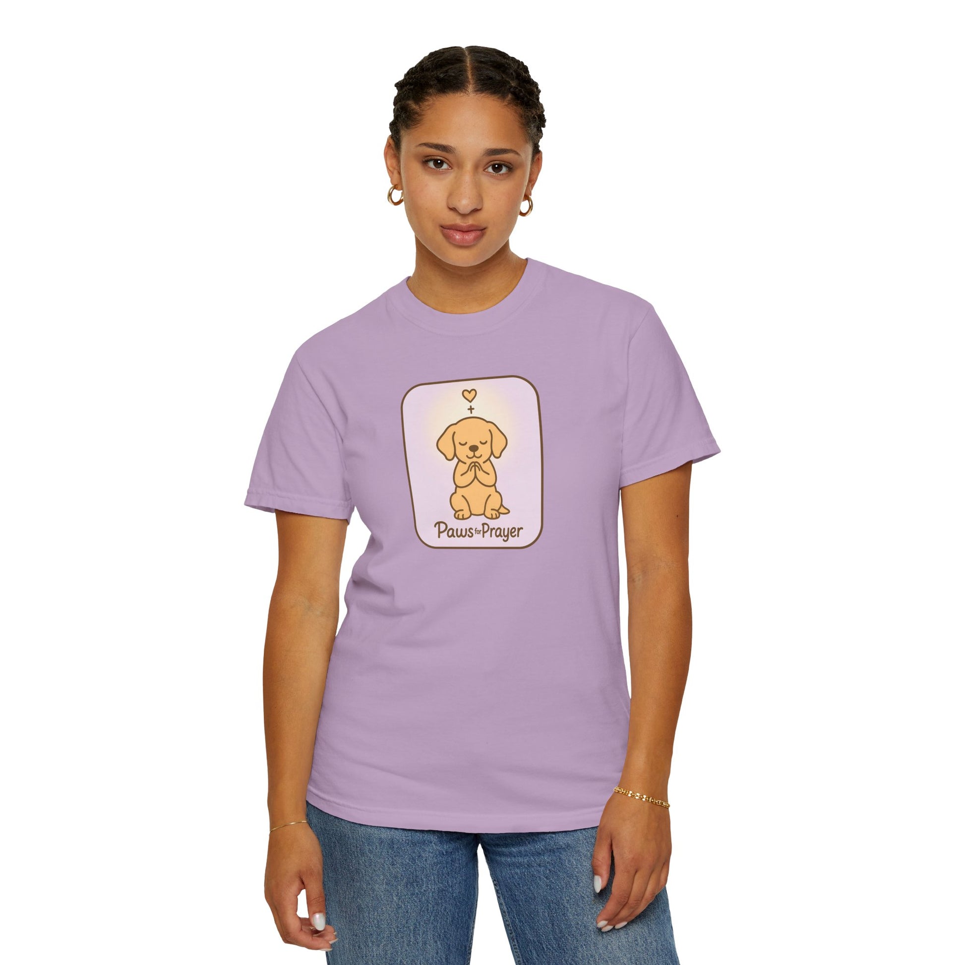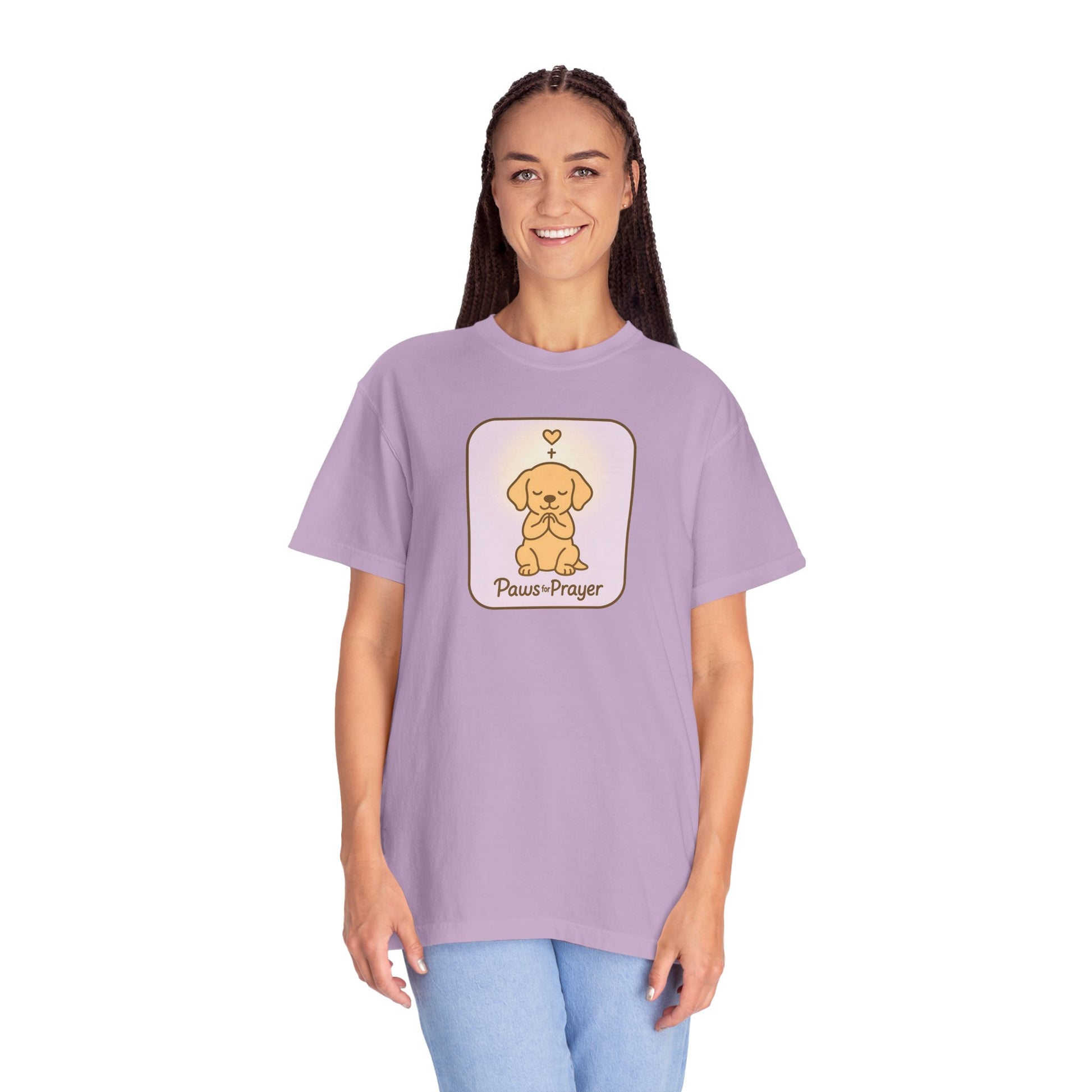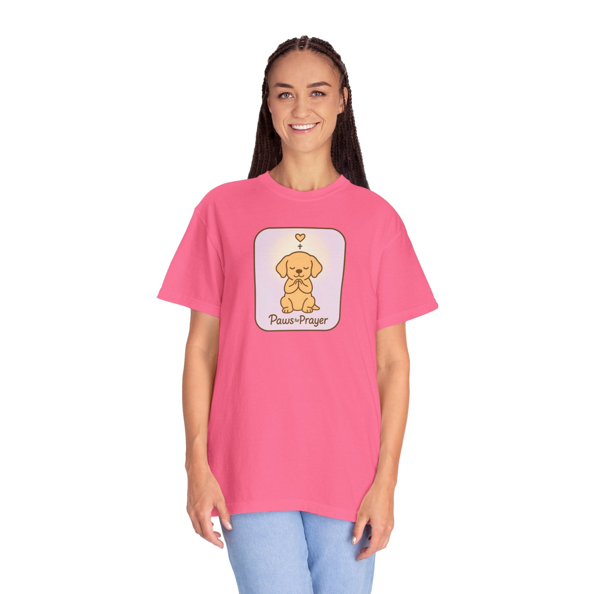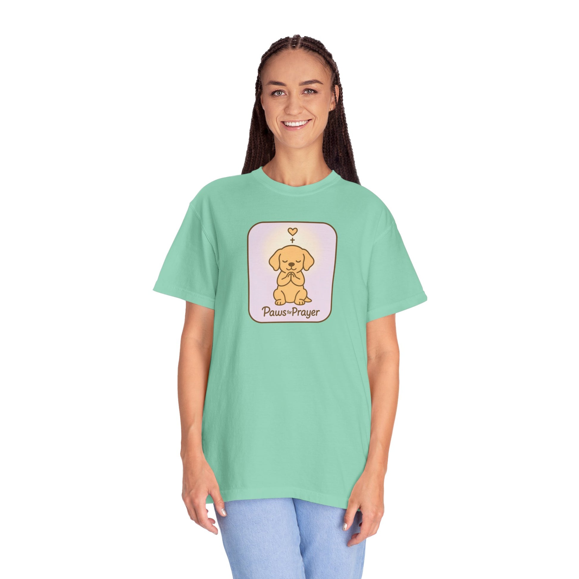 Embrace comfort and style with this unisex garment-dyed t-shirt, ideal for lovers of pets and prayer. The softness of the dyed fabric is complemented by a charming design, evoking a warm and peaceful vibe. Perfect for everyday wear or casual gatherings, this t-shirt blends effortlessly into your wardrobe, making it a versatile choice for any occasion. Tailored for adults, it’s a thoughtful gift for pet owners, spiritual seekers, or anyone who enjoys heartfelt apparel. It’s a great pick for holidays like Christmas, birthdays, and special gatherings, celebrating love for pets and mindfulness in daily life.