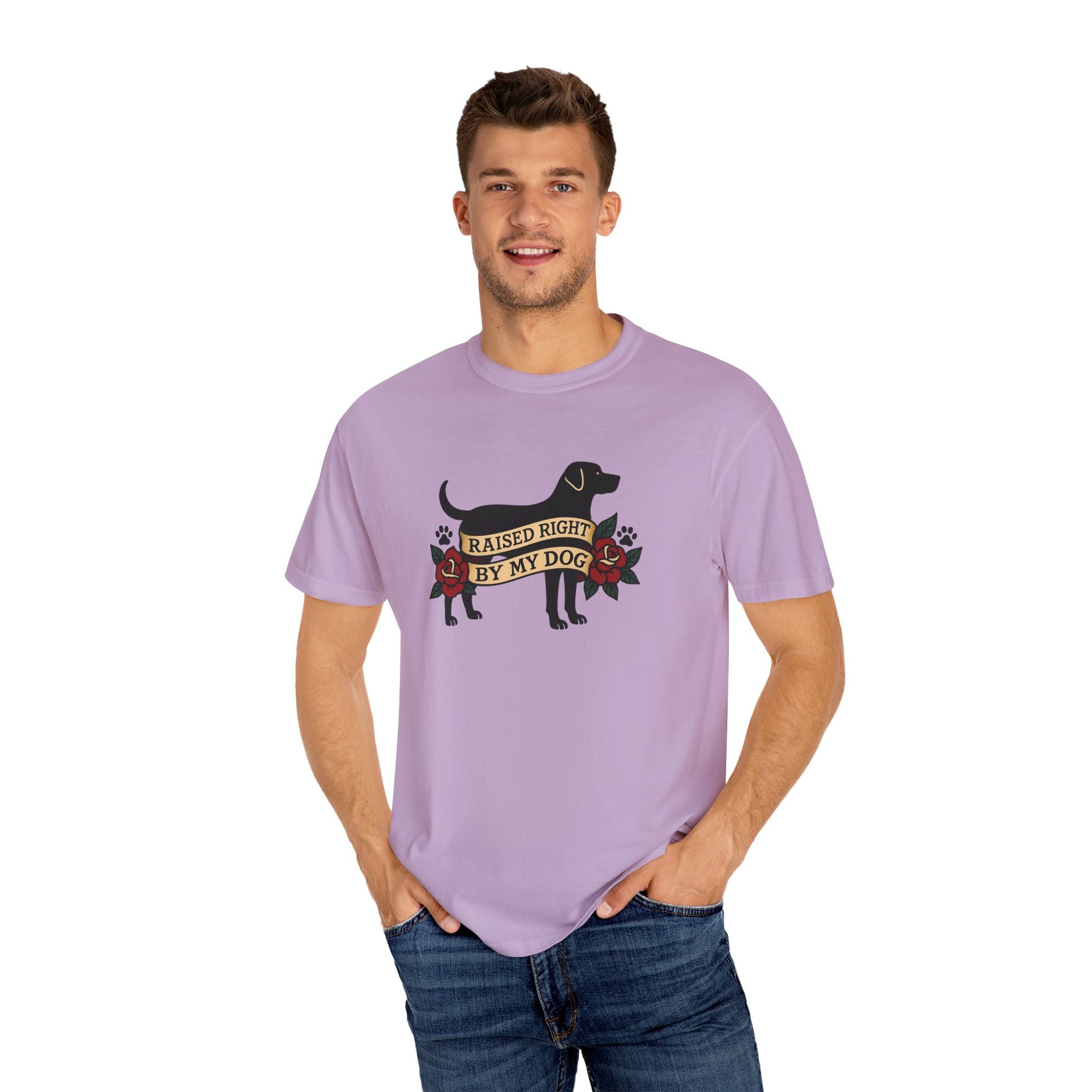 Raised Right by My Dog Tee, Unisex Pet-Themed Apparel, Gift for Dog Owners, Cute Canine Shirt