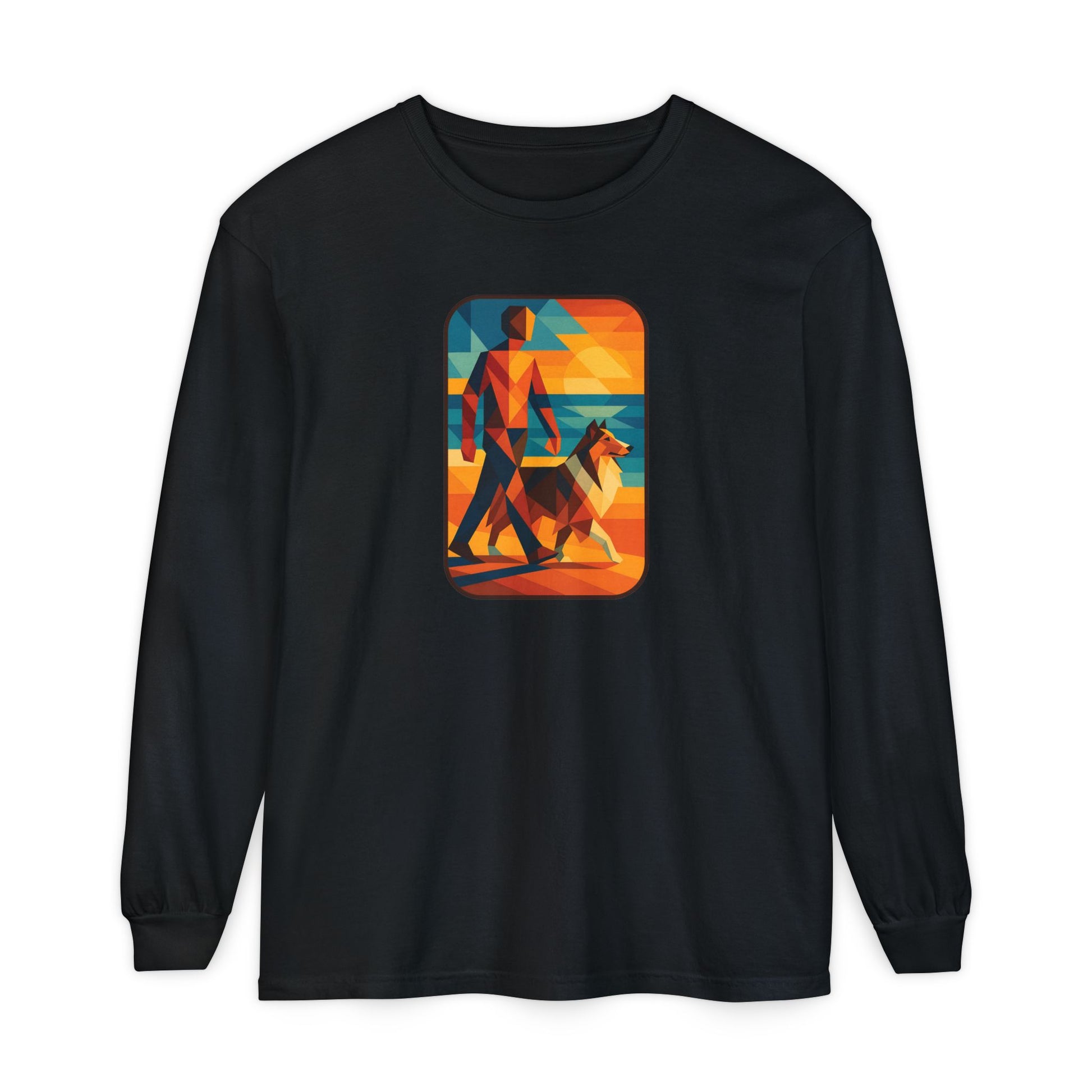 Introducing a stylish and comfortable unisex garment-dyed long sleeve t-shirt. Crafted with care, this shirt features vibrant colors that evoke a warm, inviting atmosphere. Perfect for leisurely walks, casual outings, or lounging at home, it seamlessly fits into a buyer’s lifestyle. Ideal for dog lovers and outdoor enthusiasts alike, this shirt is a great gift for birthdays, Father’s Day, or just because. Add a touch of artistic flair to your wardrobe while enjoying the durability and softness of high-quality fabric. Celebrate moments with friends and family, and embrace the casual elegance this shirt brings to any occasion.