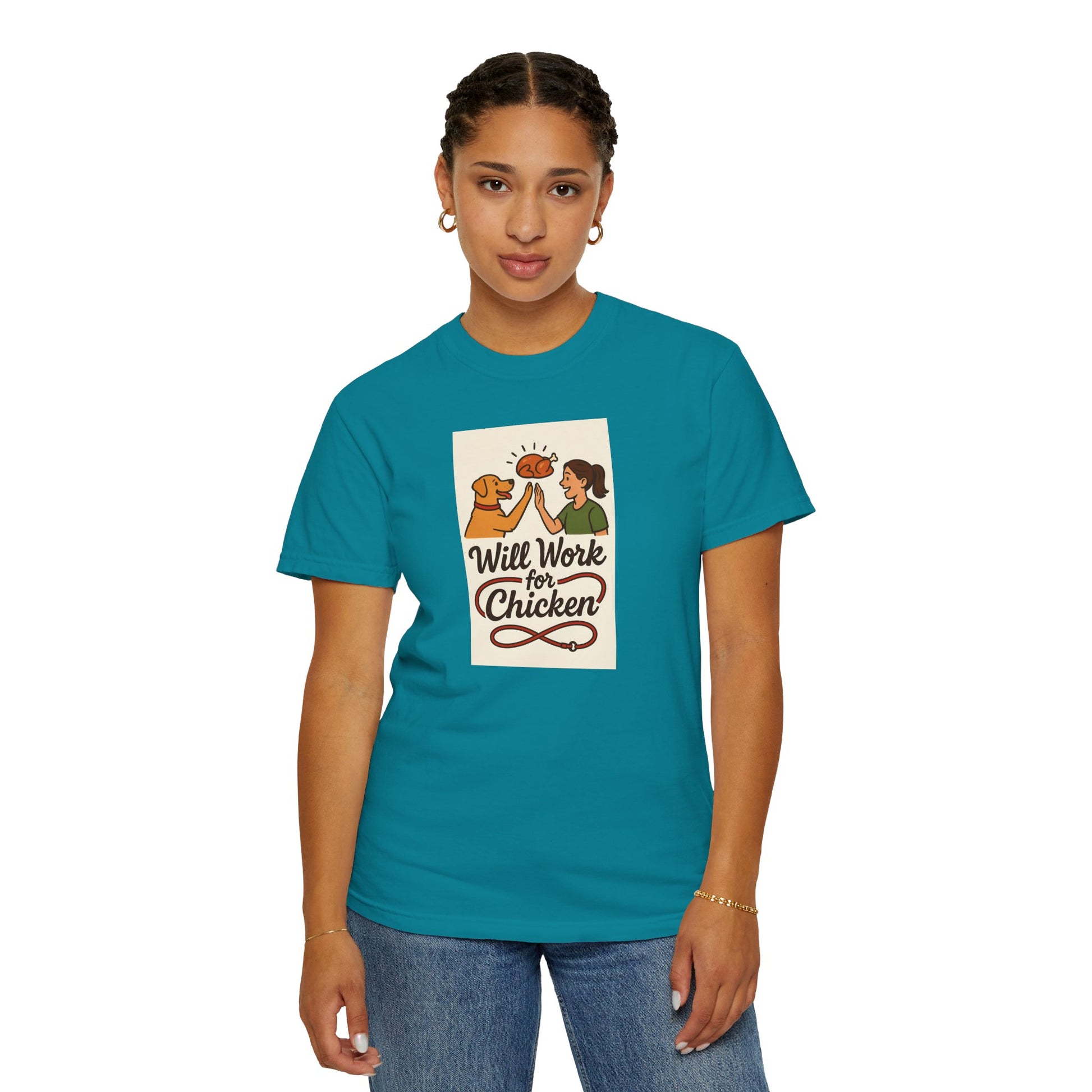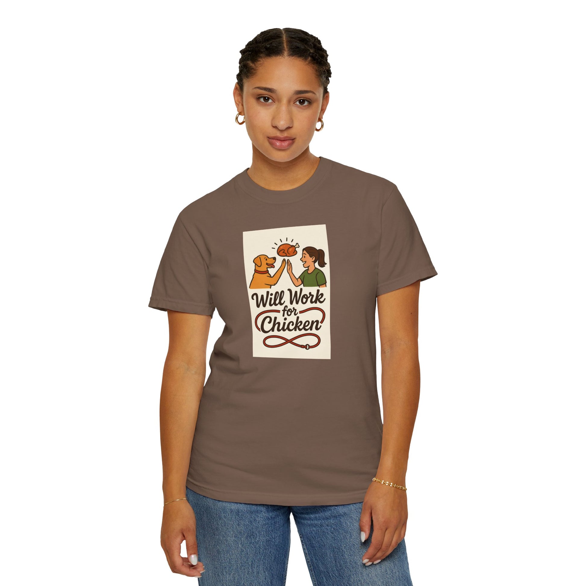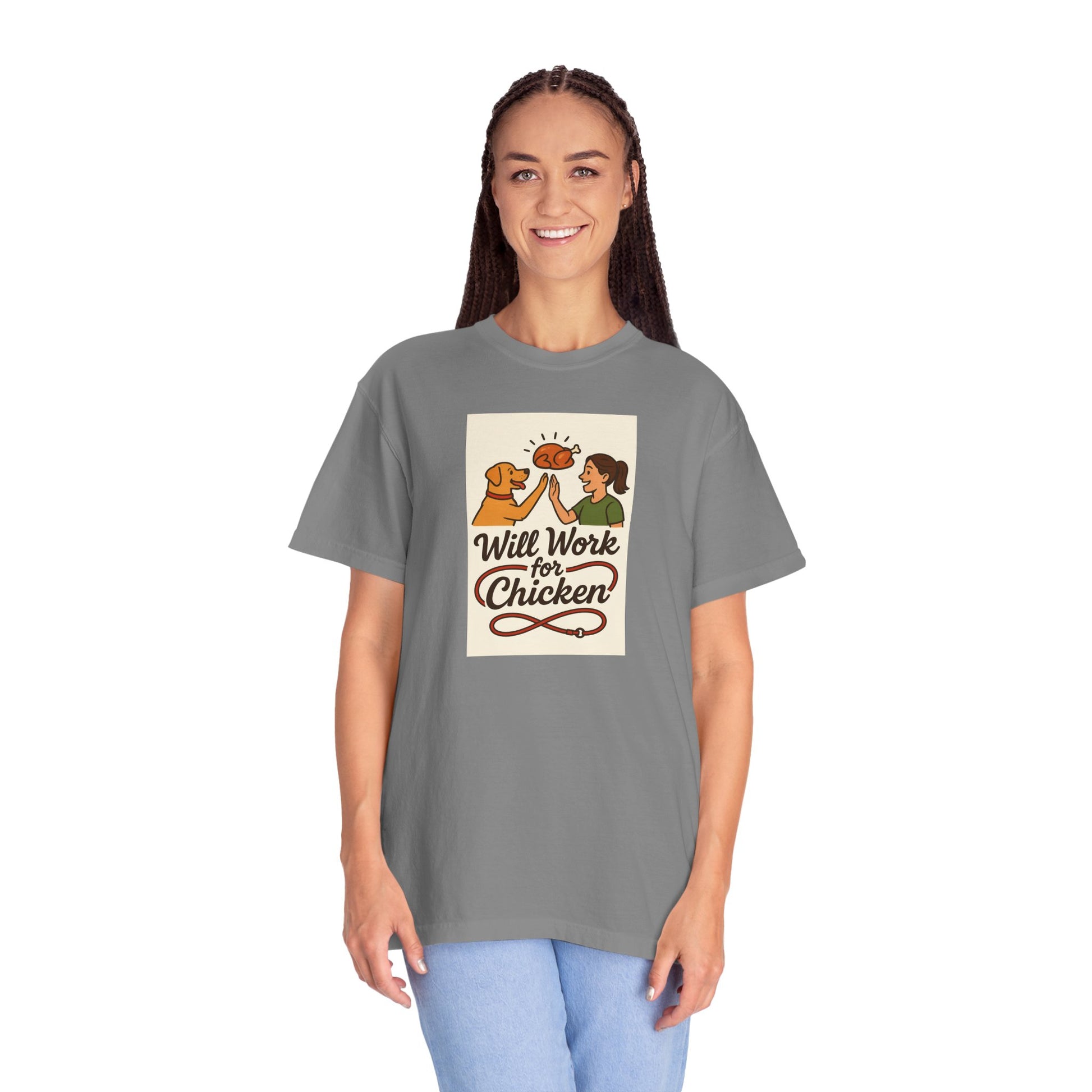 Will Work for Chicken Unisex T-Shirt | Pet Lover Gift, Funny Dog Tee, Casual Wear, Unique Animal Lover Apparel, Gift for Dog Parents